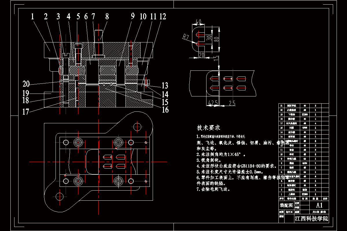 本设计主要是设计一台落料冲压模具的设计,设计中根据刀片的形状,分析刀片采用什么方式完成加工,如何加工,图纸如何设计。根据工件的要求,设计中首先要对工件进行落料,然后冲压完成设计,落料和冲压要计算需要多大的力,进而选用所需要的压力机,同时根据工件的特点计算一下材料的利用率,材料如何排样,材料的搭边值是多少,同时对冲压凸凹模进行刃口的分析计算。完成以上分析后进而设计出对应的图纸。