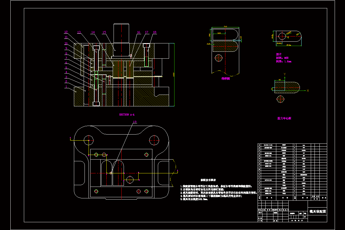 插片冲压模的设计,工件为对称结构。模具的设计的设计先从工件的工艺结构出发,根据工件技术图纸要求和形状来确定模具的设计方案,进步一确定模具制造精度等级,和排样设计从而确定出模具的类型结构。从实际生产的角度出发,为了节约模具制造成本,提高产品生产效率,保证工件的生产精度,该工件的冲裁模具设计采用级进模具冲裁。在模具设计前主要查找工件图纸中未标注公差的尺寸公差,根据尺寸公差来确定模具制造的精度,经过排样分析以后,开始进行模具的结构设计,计算模具的闭合高度、卸料力、冲裁力、冲裁间隙、模具装配配合间隙、凸模高度、压力中心、模具总压力,根据总冲压力选择冲压设备;所有的设计方案确定以后开始绘制模具草图、装配图、零件图、编写技术要求、设计说明书。