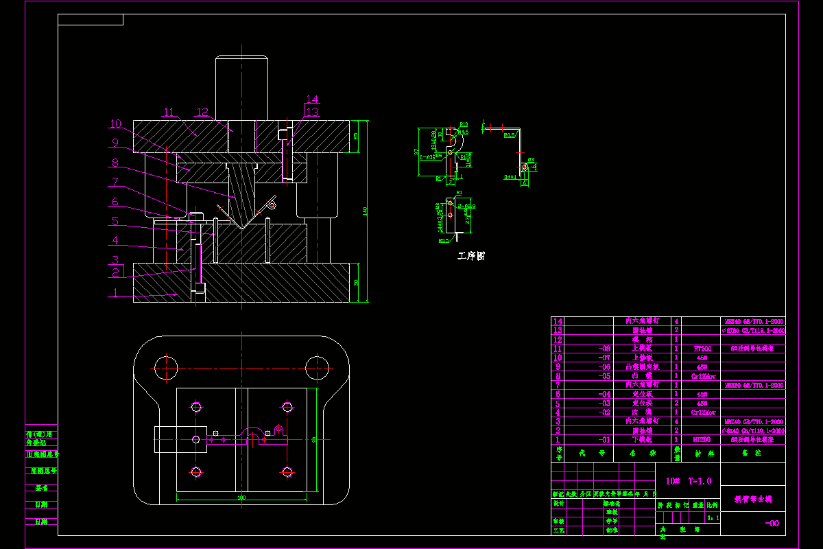本文阐述了冲压复合模的结构设计及工作过程,通过工艺分析,采用落料冲孔工序,通过冲裁力、顶件力、卸料力等计算,确定模具类型。该模具采用中间导柱模架,左右两边的导柱和导套采用不同的型号,以避免装配时错误。落料凹模采用整体结构,废料从凸凹模的开槽中卸出。本模具性能可靠,运行平稳,提高了产品质量和生产效率,降低劳动强度和生产成本。