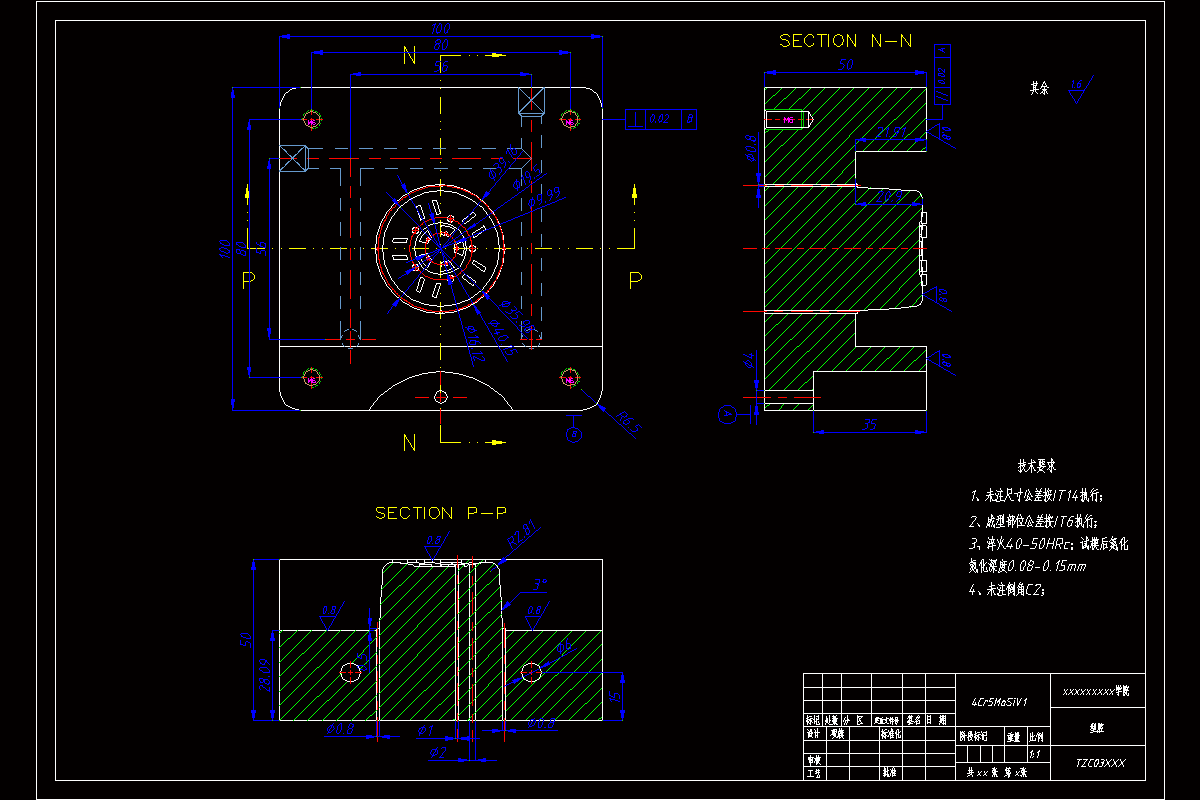 根据零件的结构和尺寸设计了完整的模具。设计内容主要包括:浇注系统设计、成型零件设计、抽芯机构设计、推出机构设计以及模体结构设计。根据铸件的形状特点、零件尺寸及精度,选定了合适的压铸机,通过准确的计算并查阅设计手册,确定了成型零件以及模体的尺寸及精度,在材料的选取及热处理要求上也作出了详细说明,并在结合理论知识的基础上,借助于计算机辅助软件绘制了各部分零件及装配体的立体图和工程图,以保障模具的加工制造。