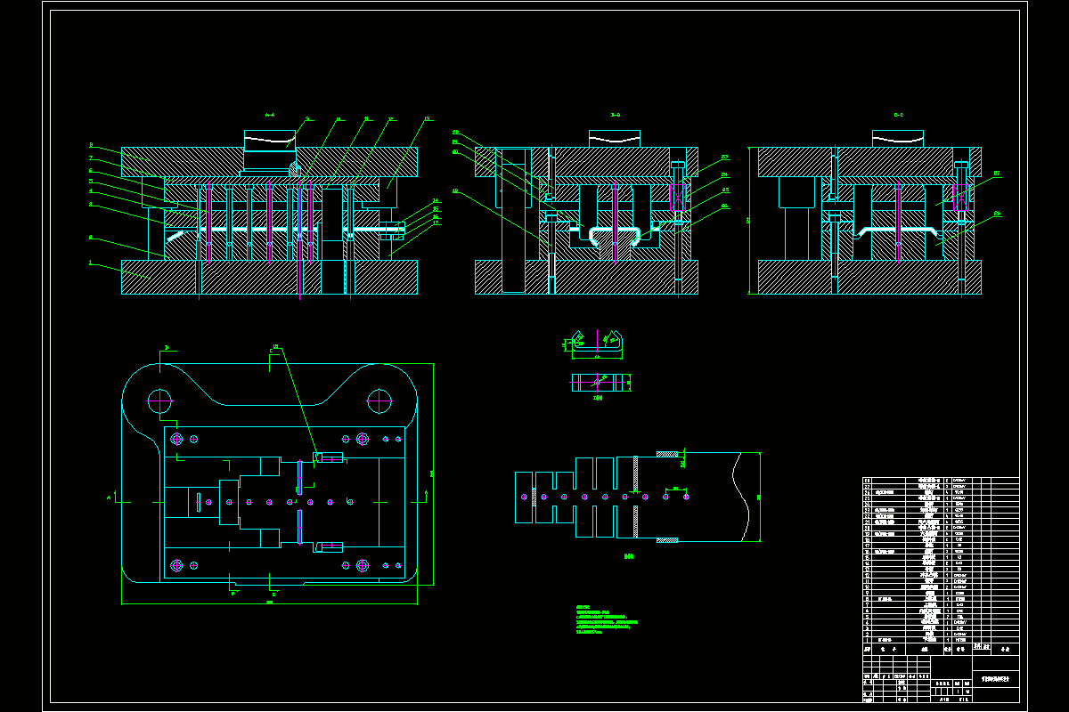 从工件结构分析,工件有冲孔、落料、弯曲等工艺组成,工件形状具备对称性。模具的设计的设计先从工件的工艺结构出发,根据工件图只要求和形状来确定模具的设计方案,进步一确定模具制造精度等级,和排样设计从而确定出模具的类型结构,从实际生产的角度出发,为了节约模具制造成本,提高产品生产效率,保证工件的生产精度,该工件的冲裁模具设计方案采用了级进模具冲裁。在模具设计前主要查找工件图纸中未标注公差的尺寸公差,根据尺寸公差来确定模具制造的精度,经过多次的排样分析以后,开始进行模具的结构设计,计算模具的闭合高度、卸料力、冲裁力、、冲裁间隙、模具装配配合间隙、凸模高度、压力中心、模具总压力,根据总冲压力选择冲压设备;所有的设计方案确定以后开始绘制模具草图、装配图、零件图、编写技术要求、设计说明书。