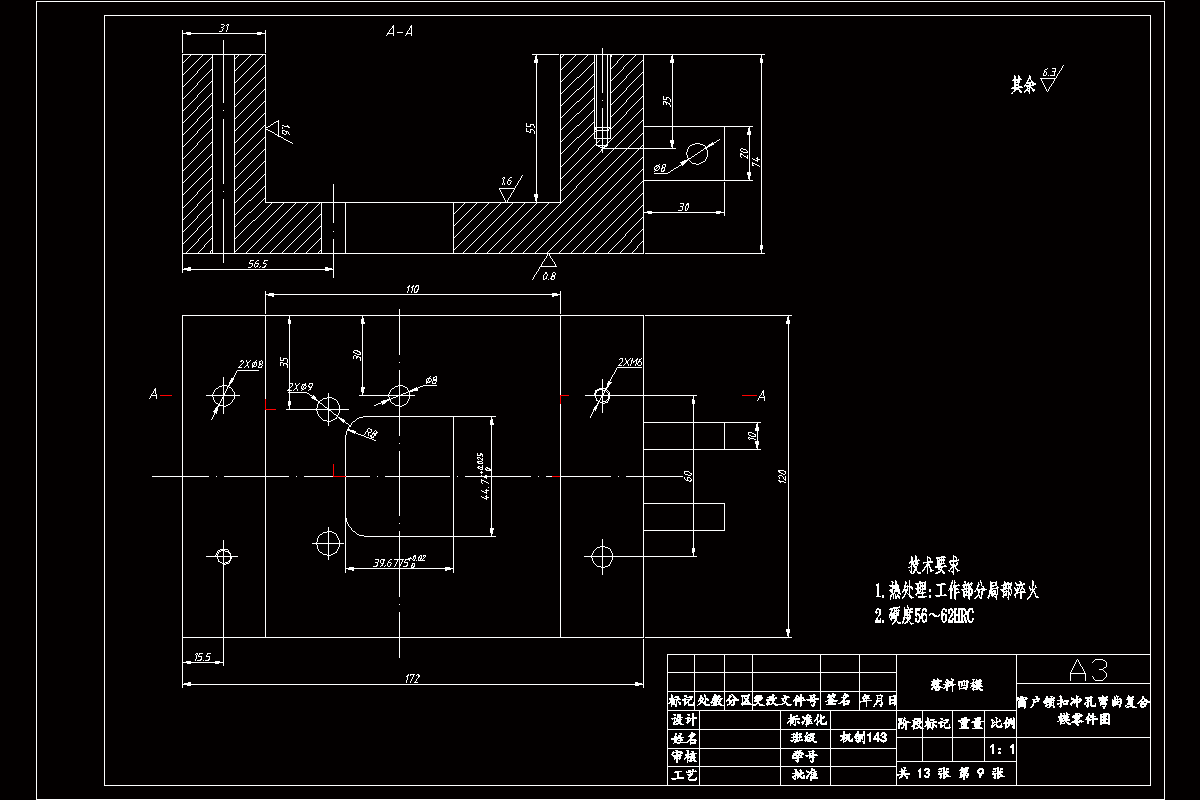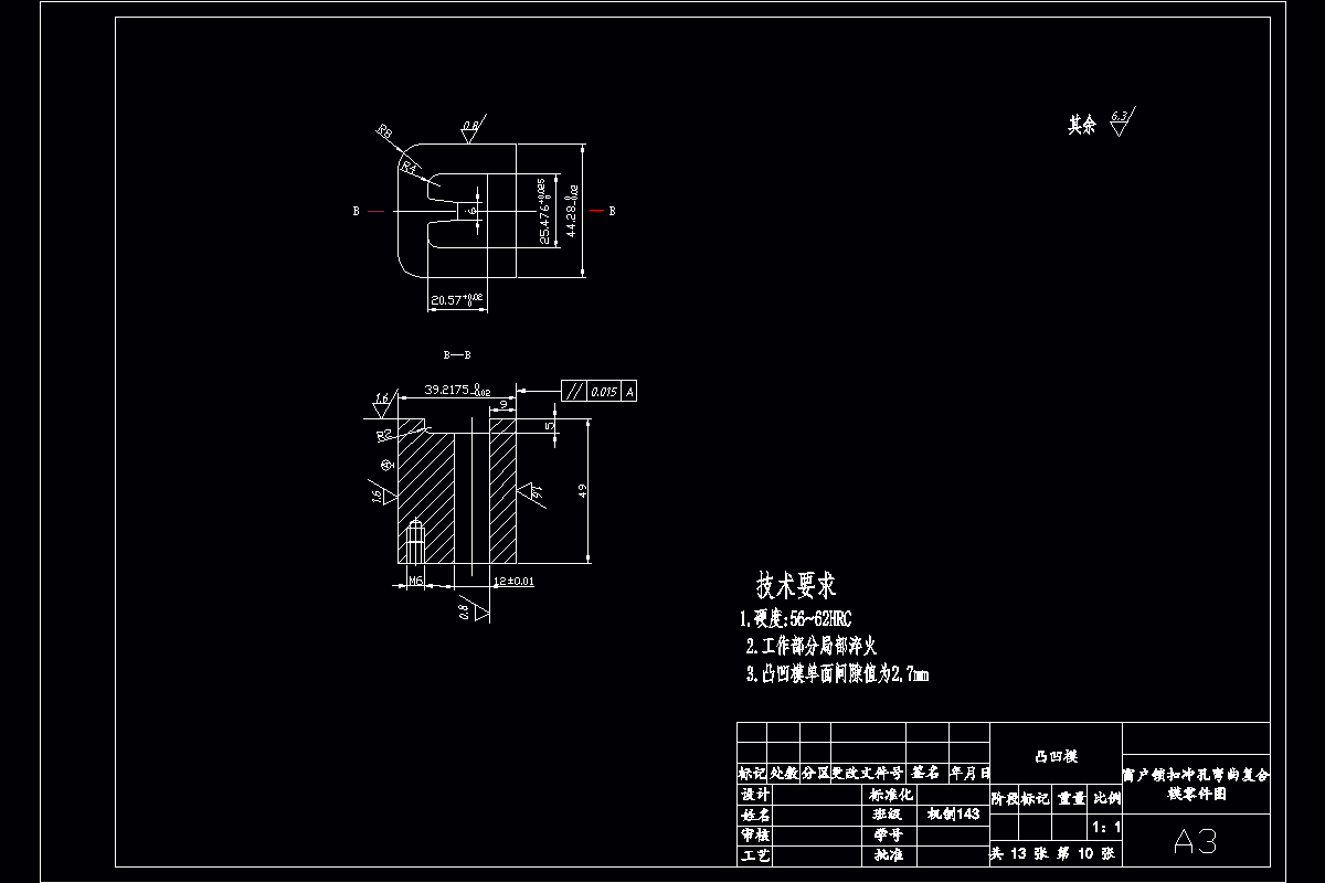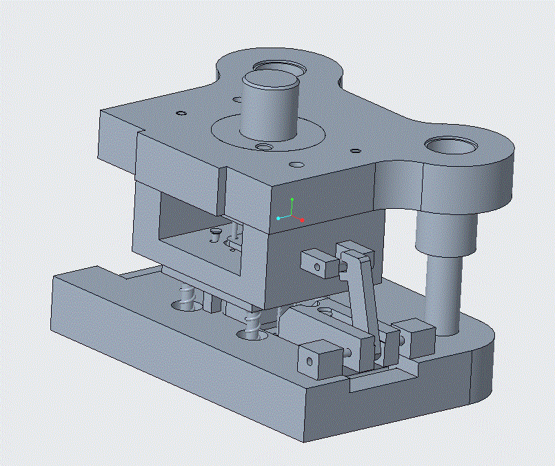本课题是对窗户锁扣的复合模设计。我对这个零件简单剖析之后,它属于简单的结构、轴对称图形,冲压的性能也比较不错。从图纸上知道零件生产批量还是比较大,我选择了落料之后再冲孔最后弯曲的工艺方法,这样做后提升很大的工作效率。我还算出该零件的排样,刃口的尺寸大孝冲裁出零件所需的力以及把内孔弯曲成U形力等,从而选了压力机来加工。确定了从前向后的送料方式,并由导料销,挡料销进行定位、定距;选择了弹性卸料装置进行卸料,卸料板在弹簧反弹力的作用下,将条料分离;被加工零件从上模中安装的打料杆推到外面。我的这项模具设计里还包括一个活动凸模块和滚轮结构。我的设计里还包括了凸、凹模以及凸凹模的等工作零件的结构和尺寸的计算,概括来说我的设计拥有简洁的结构,方便的拆卸,生产效率大幅度高于传统的生产效率。