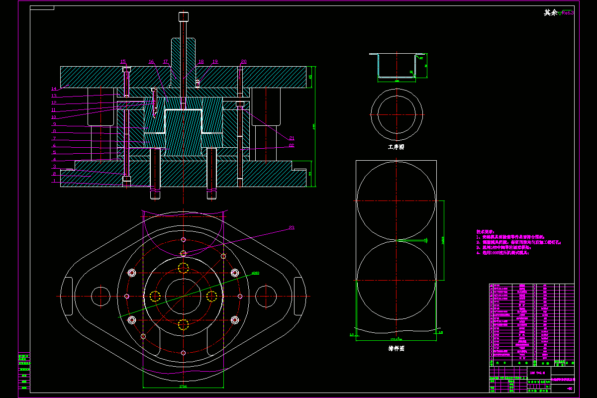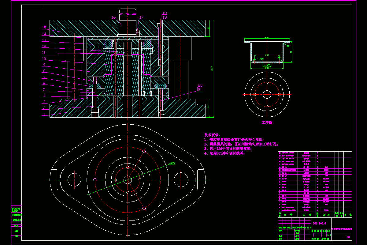 关键词:落料拉深切边,冲孔,装配图,复合模,工艺