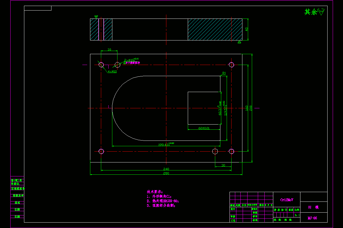 本应用本专业所学课程的理论和生产实际知识进行一次冷冲压模具设计工作的实际训练从而培养和提高了我的独立工作能力。本设计通过对垫片零件的工艺性分析,确定了正确的工艺方案。从而对模具设计方案,以及冲压设备作出了分析与选择。通过分析决定采用落料倒装冲裁模具结构形式,然后参考其他模具结构以及查手册和计算设计。当所有的参数计算完后,对模具的装配方案,对主要零件的设计和装配要求技术要求都进行了分析。在设计过程中除了设计说明书外,还包括模具的装配图,非标准零件的零件图等。