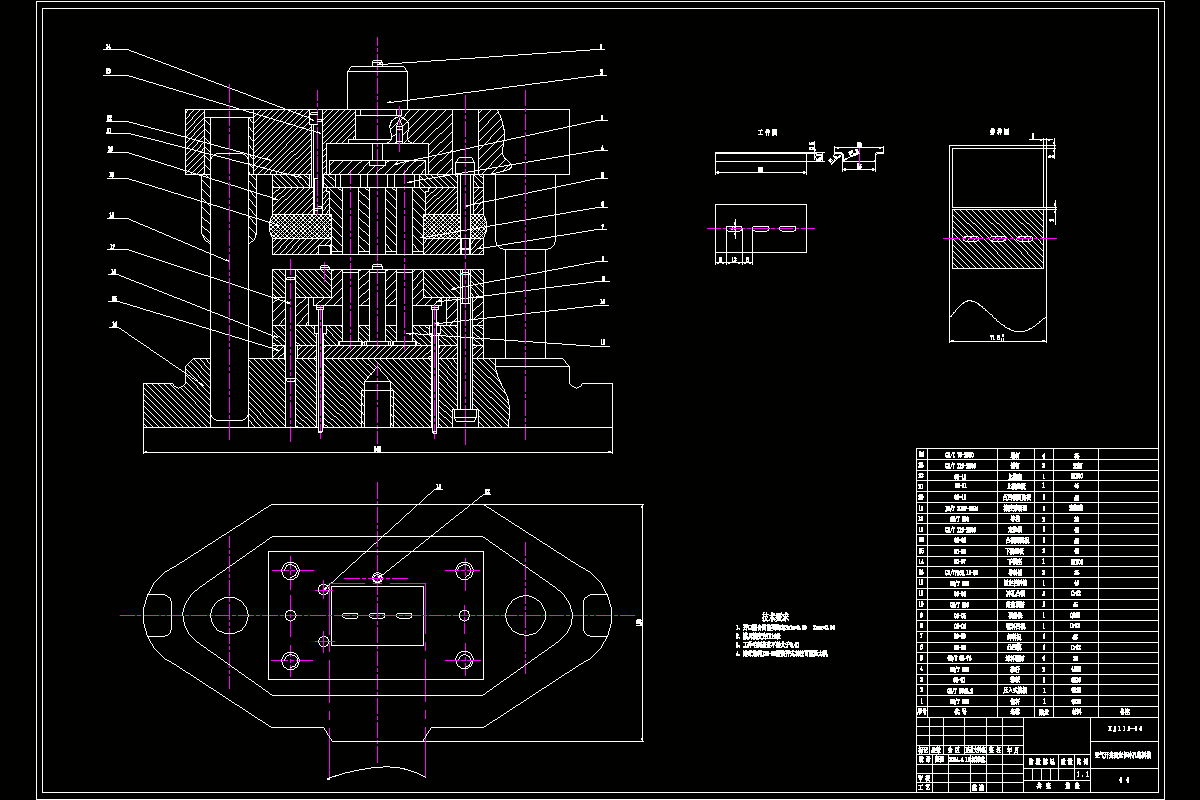 本设计运用冲孔落料弯曲成形工艺及模具设计的基础知识,首先分析了工件的成形工艺及模具成形结构对制件质量的影响。介绍了空气开关固定卡冲压成形工艺与模具设计时要注意的要点,通过对制件进行工艺分析,可确定制件的成形加工用两套模具即冲孔落料正装复合模和一次弯曲成形模具。从控制制件尺寸精度出发,对该冲孔落料弯曲模的各主要尺寸进行了理论计算,以确定各工作零件的尺寸。从模具设计到零部件的加工工艺以及装配工艺等进行详细的阐述,并应用CAD进行各重要零件的设计。