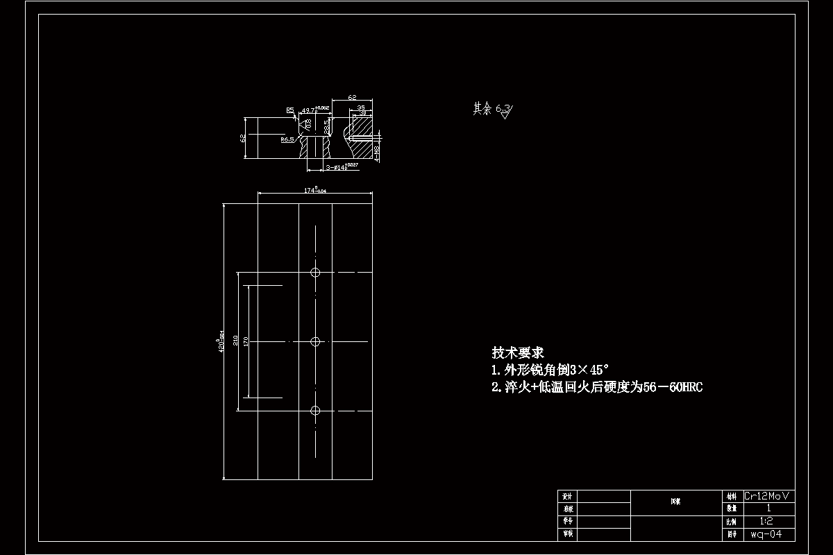 首先分析了制造轻型卡车加强筋的材料的工艺性并确定了合适的尺寸,然后计算弯曲部分的最小弯曲半径,弯曲弹复角以及坯料的精确长度。最后,根据计算结果确定所要运用的弯曲工艺方案。从上述力的分析中,计算材料的弯曲应力并选择合适压力机。计算凹凸模的外形尺寸并确定其制造和组装精度,接着确定固定板和上下模座的尺寸。选择合适零件,如:顶件板,定位板和弹顶器等,并确定顶件板尺寸。基于上述数据最终确定了压力机的型号。最后,根据以上计算结果使用AUTOCAD绘图软件绘制模具的总装配图和部分重要零件的零件图。
