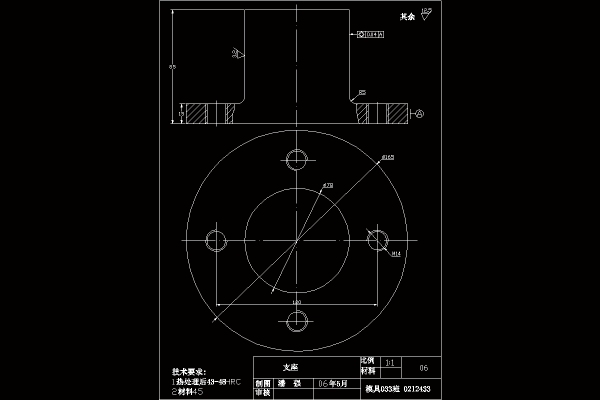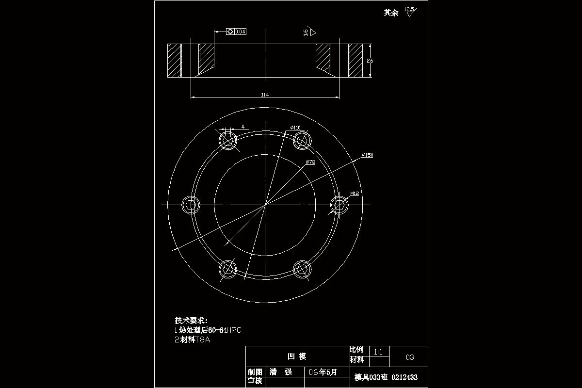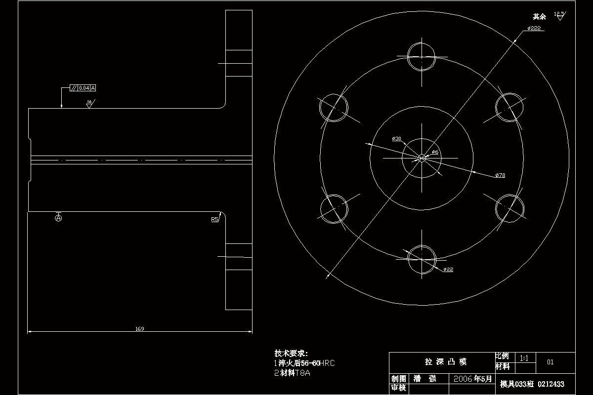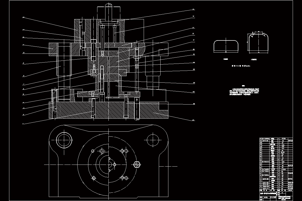 为了使我的设计更加简明易懂,在设计过程中,我用CAD制图软件画出了十几张零件图,安插在设计任务书中。最后画出拉深—挤边模具的装配图一张和工作零部件的零件图九张。