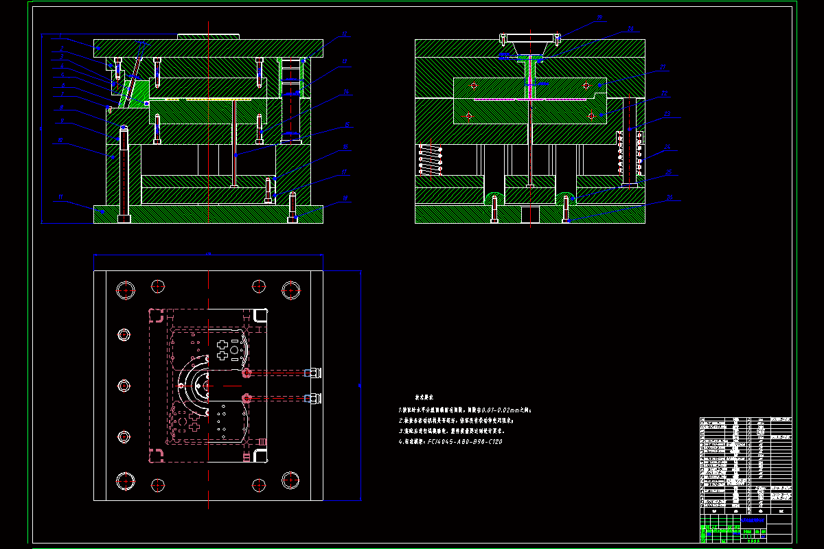 模具在现代的工业生产中起着巨大的作用,有着极其广泛的应用领域。而注塑模在最近几年的发展速度很快,在模具工业中占有很大的地位。因此,研究注塑模对了解塑料制品的生产过程和提高塑料制品的产品质量都有很大的意义。此次设计中,通过对小车底座进行成型工艺分析和模具设计,介绍了注塑模设计的基本过程。包括对塑件结构的工艺性分析和使用材料的工艺性分析,在模具设计中,介绍了注塑机的选择方法,浇口,冷料口、排气槽等的设计,还详细介绍了型腔数量确定的方法,分型面、侧向抽芯机构、合模导向机构、脱模机构、冷却机构等的设计原则。通过此次设计,可以对注塑模的发展和设计方法有一个基本的认识,能注意到设计过程中的细节问题,了解模具结构和工作原理。