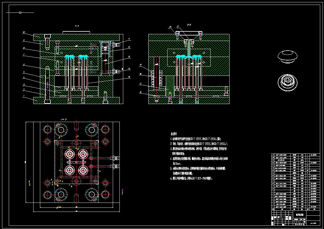 关键词:冰箱调温按钮;一模四腔;潜浇口进料;注射机,注塑模具