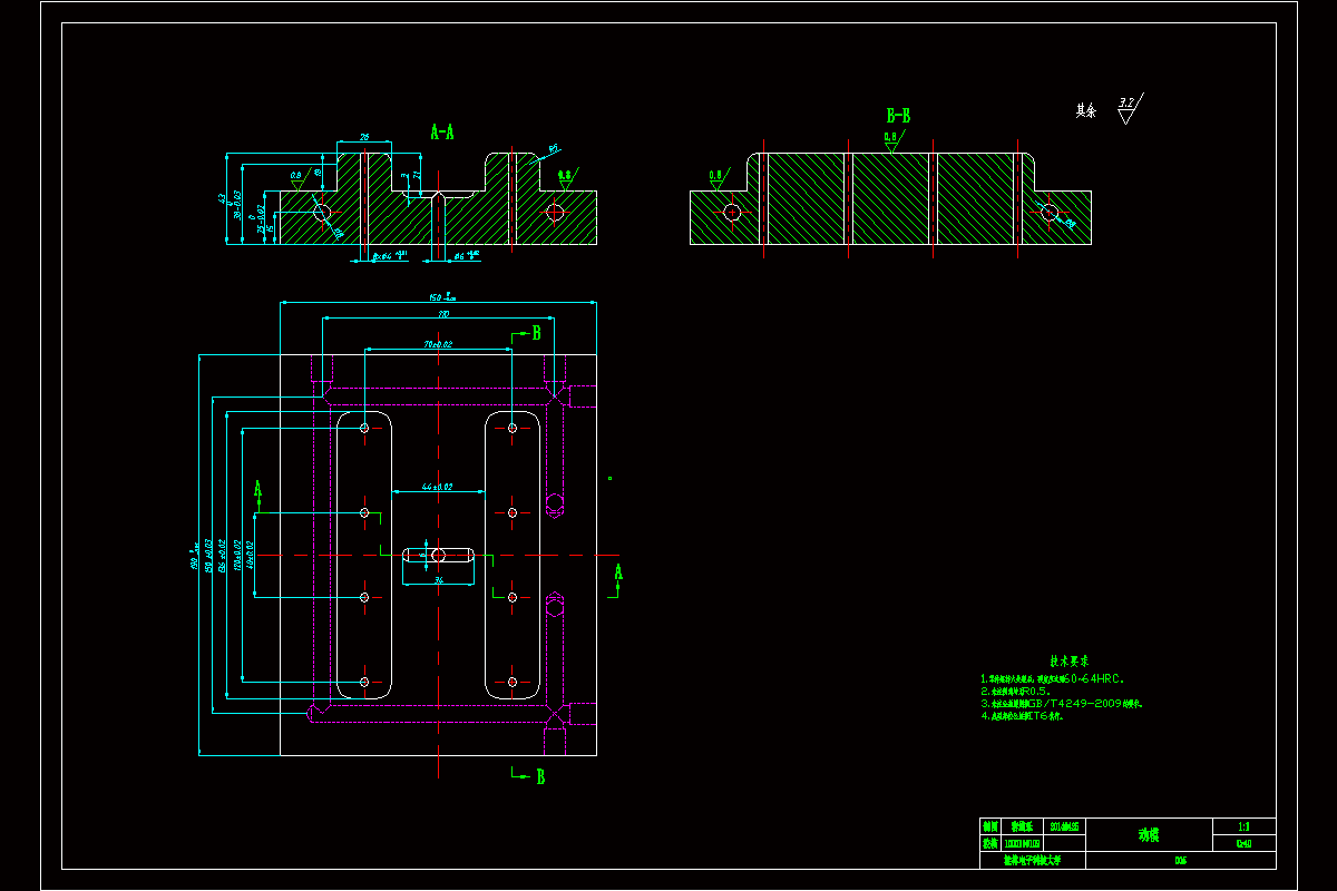 本文为旅行箱拖手塑料套的产品设计到整个注塑模的设计过程,即对长140mm、宽30mm、高20mm拖手塑料套的注塑模具设计。塑料套的外形设计有防滑纹理,在侧边设有固定的螺丝孔以便固定在伸缩支架上。其螺钉孔根据设计要求采用侧向抽芯机构进行抽芯,然后通过顶杆将制件顶出。稳重介绍了拖手塑料套的外形、结构等设计要求,制件的结构分析,制件的工艺性分析,制件质量、体积计算,材料、生产批量的确定,成型方法的选取及成型设备的选择,注塑模的结构设计,在设计模具时的相关计算,模具机构设计,注射机的选择及其校核,成型零件的相关计算及其校核。在设计中进行大量的计算,如成型零件工作尺寸的计算,型芯、型腔径向和高度计算,推杆直径及其数目的计算等。由此在整个设计计算的过程中,确定了模具的结构及相关的零部件。在整个模具的设计过程中采用CAD/CAM设计系统进行一体化设计,用PROE软件进行塑件的三维造型及其分析,用AUTOCAD进行二维的工程图二维设计。