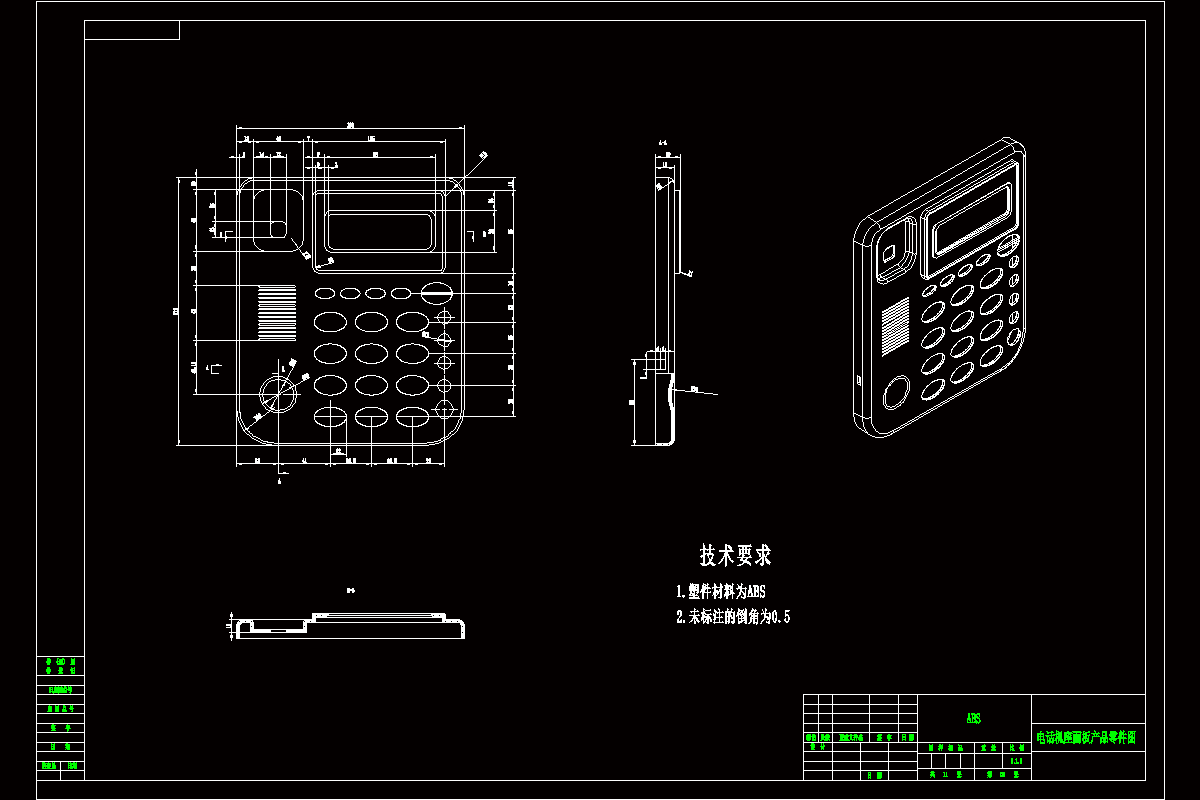 本文是关于电话机座注塑模具的设计,详细描述了整套模具的设计过程,正确分析塑件工艺特点和ABS材料的性能。主要内容包括了对凸模,凹模,浇注系统,脱模机构,选择标准零件,设计非标件的设计过程。在正确的分析材料的特点和塑件的工艺特点后,运用CAXA、Solidworks等不同的软件对塑件和模具的设计,制造及质量进行分析。涉及模具结构、强度、寿命计算及熔融塑料在模具中流动预测等复杂的工程运算问题;综合运用了专业基储专业课知识设计;其核心知识运用多种专业知识,如塑料成型模具、材料成型技术基储机械设计、塑料成型工艺、模具CADCAM等。