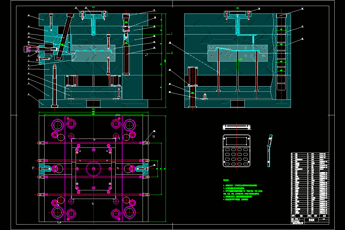本次侧抽芯计算机外壳注塑模具设计中,大多数零件使用标准件,成型零件使用了镶嵌块,降低了模具制造成本和生产周期,提高了市场竞争力;设计过程中参考各类资料,使用CAXAcad进行绘图,设计合理可靠。
