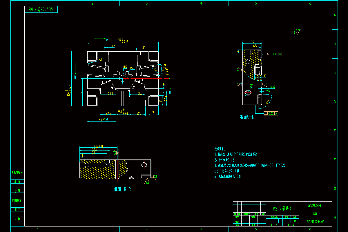 全设计说明书共六章。主要内容有课题所选塑件产品的介绍,我国塑料及注塑模具行业的现状,塑胶件的结构造型及检测,注射机的选择,塑件的模流分析,注塑模具设计方法、步骤(模腔分布及分型面的确定、成型零件设计、浇注系统设计、抽芯机构设计、脱模机构设计、排气系统设计、冷却系统设计、模架加载、注塑模材料的选用),模具型腔的加工及对本次设计的总结与展望。