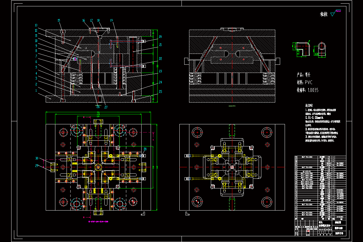 次设计是以“直角弯头”塑件为原始文件,进行注塑模具设计。首选针对此塑件,进行结构分析,确定其塑件结构适合采用注塑模具结构生产,然后选择合适的高分子材料与型腔的出模数量。结合模具设计原则与设计规范,选择分型面并且分模完成成型系统零件设计,对浇注系统的设计方面,力求充填均匀,流道废料少、短。冷却系统均匀的分布在塑件的周边,使得温度冷却合理,在脱模顶出机构上,采用均匀分布顶出系统,让塑件能够均匀的受力顶出脱模。在选择标注模架系统方面,采用了国内最大的模具企业生产的龙记GB国标标准模架系统,能够保证制造周期短,制造精度高、效率高的特点。