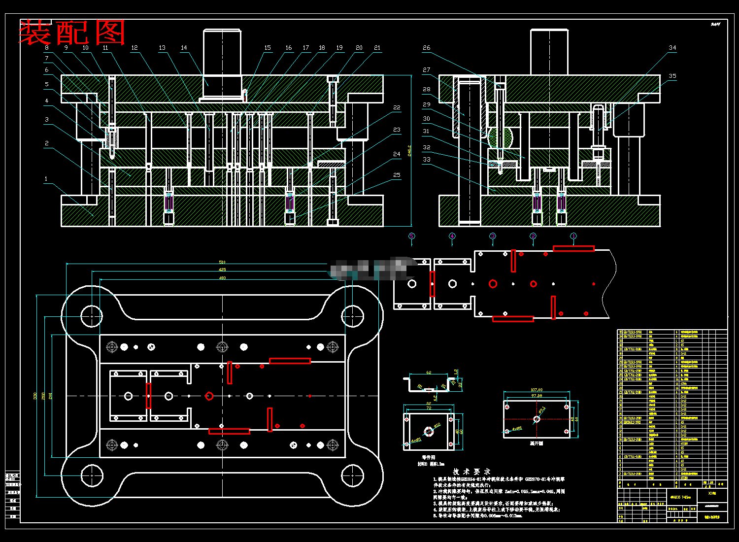 本次设计为的主要内容托架零件冲压模具,对模具的零件进行分析,最终选择模具形式为多工位级进模,采用多工位级进模的益处,不但可以大大提高生产效率,还可以避免了多套模具冲裁时工序间的多次定位造成的误差,是提高了零件的精度的有效办法。整套模具操作起来会更加方便,并且可以很大程度上的减少了多个单工序模带来的一些材料损耗。模具的结构更加综合,效率更高。 本次模具的工序较多且很复杂,其中工序包括冲孔、弯曲、落料、翻边等。重点在于各个工序的设计处理上,该模具工序形式多样,需要多个工序。为了保证冲压的精度模具设置了多个导正销进行定位提高精度。本次设计模具的卸料方式为弹性卸料。