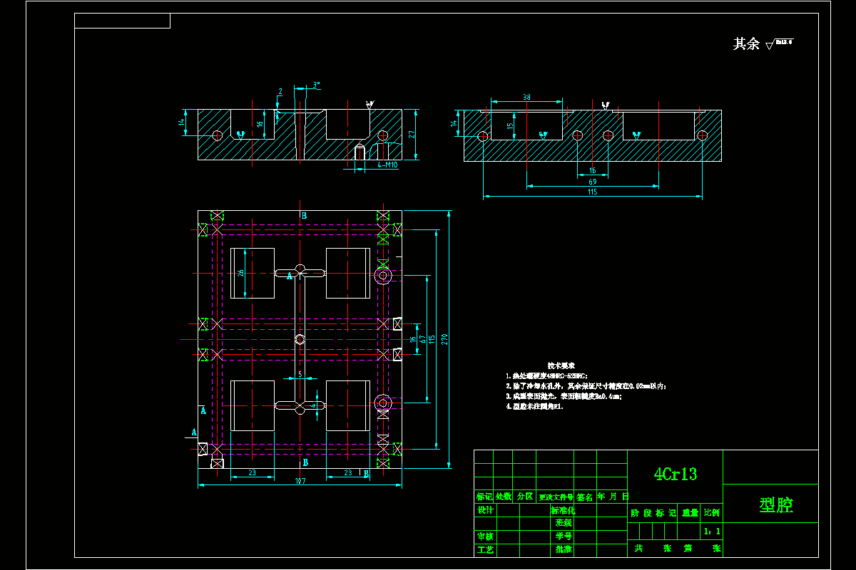 本设计是方形盒盖零件的注塑模具设计,在结合了传统的机械设计后把CAD/CAM技术应用在注塑模具的设计上,在CAD系统实行了模型和注塑模具的设计。本文介绍了我国当前模具技术的发展状况以及CAD/CAM在模具上的应用,其中包括AUTOCAD。主要的机械部分设计,其内容包括塑料注塑模具的工作原理及应用,设计准则。塑料注塑模的设计计算,包括模具结构设计,注塑机的选用,浇注系统的设计,动、定模,浇注系统,脱模机构,顶出机构,冷却系统等设计等方面。如此设计出的结构可确保模具工作运行可靠。