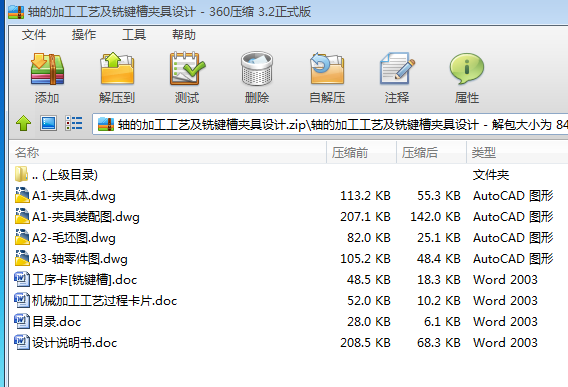 轴零件的工艺规程及铣键槽的夹具设计是包括零件加工的工艺设计、工序设计以及专用夹具的设计三部分。在工艺设计中要首先对零件进行分析,了解零件的工艺再设计出毛坯的结构,并选择好零件的加工基准,设计出零件的工艺路线;接着对零件各个工步的工序进行尺寸计算,关键是决定出各个工序的工艺装备及切削用量;然后进行专用夹具的设计,选择设计出夹具的各个组成部件,如定位元件、夹紧元件、引导元件、夹具体与机床的连接部件以及其它部件;计算出夹具定位时产生的定位误差,分析夹具结构的合理性与不足之处,并在以后设计中注意改进。