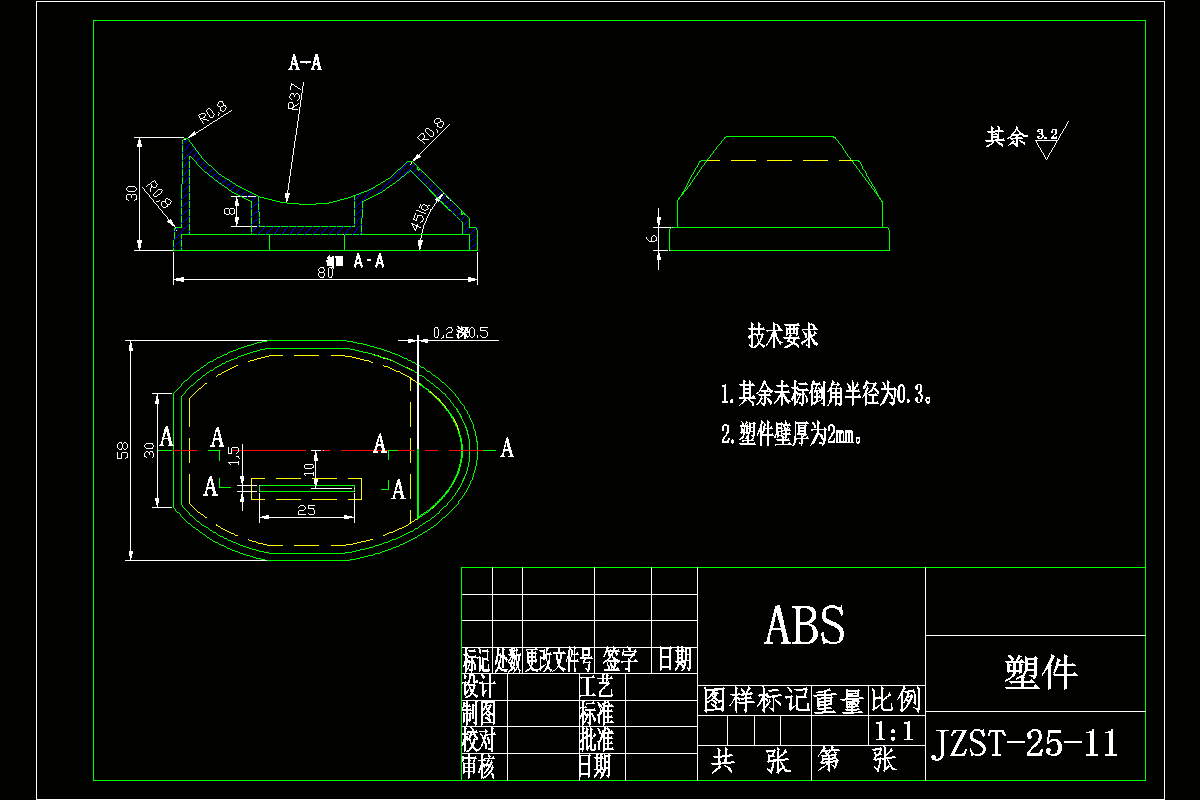 本设计是高档手表包装盒底座的模具设计,塑件为日常生活用品的外观装饰品,对结构无特殊要求。从外观上初步来看,为了达到美观效果,表面都比较光洁;形状也相对比较复杂,多为曲面;且为薄壳体,在塑件表面有一小深凹槽。故本设计塑件材料采用性价比比较高的ABS塑料,模具结构采用一模两腔单分型面结构,整体嵌入式凹式模块+局部镶拼方式,潜伏式浇口自动脱落浇注系统结构,顶出机构采用顶杆式。选用标准模架结构和相应的标准件。