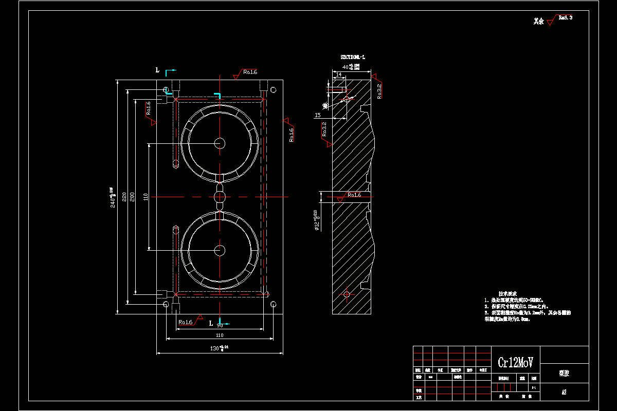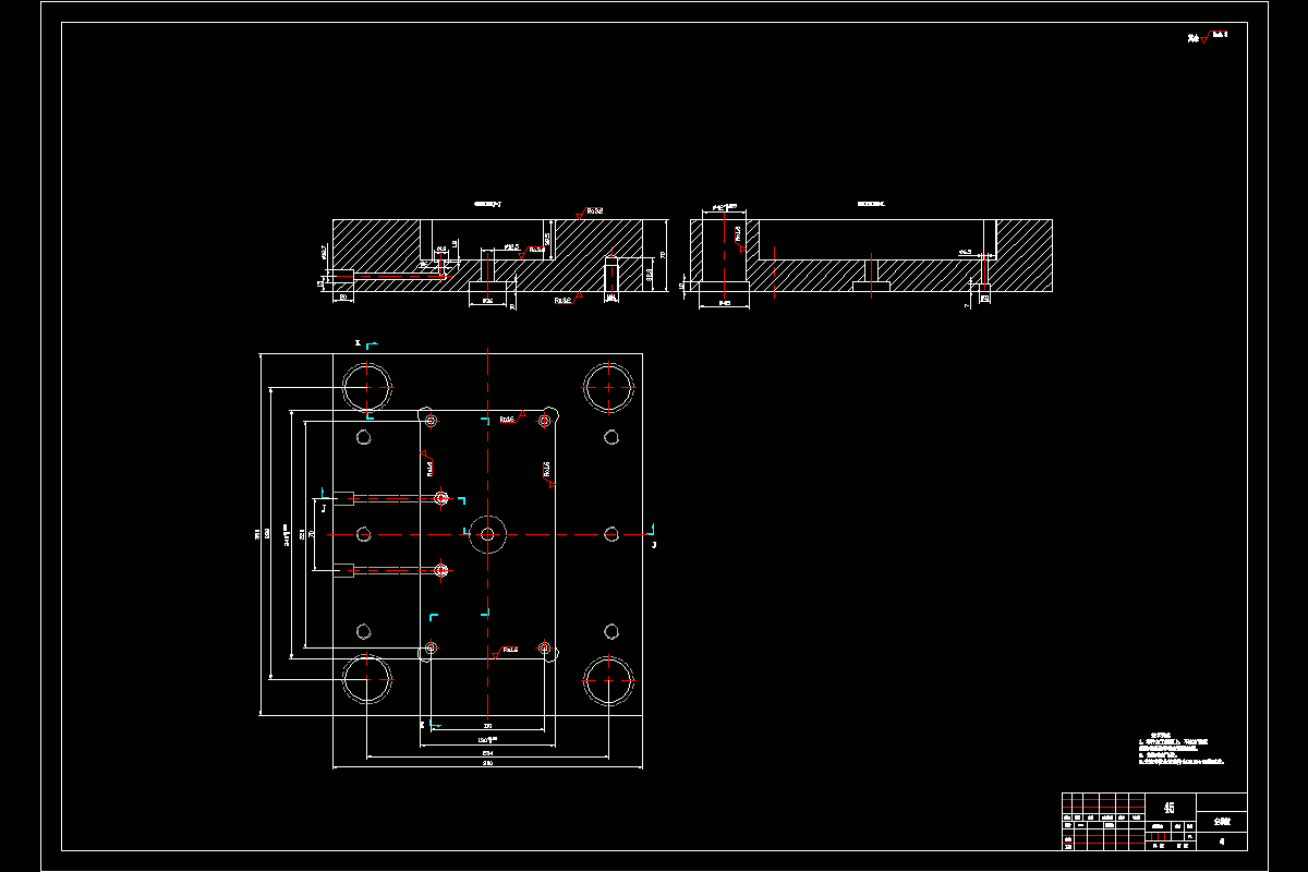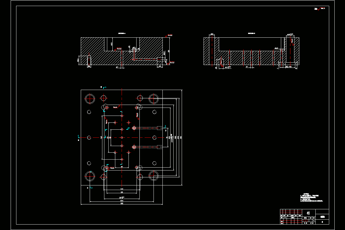 在设计过程中,为了更清晰地表达的模具的内部结构,所以有很多的模具结构和模具的局部图,并通过其CAD二维图。