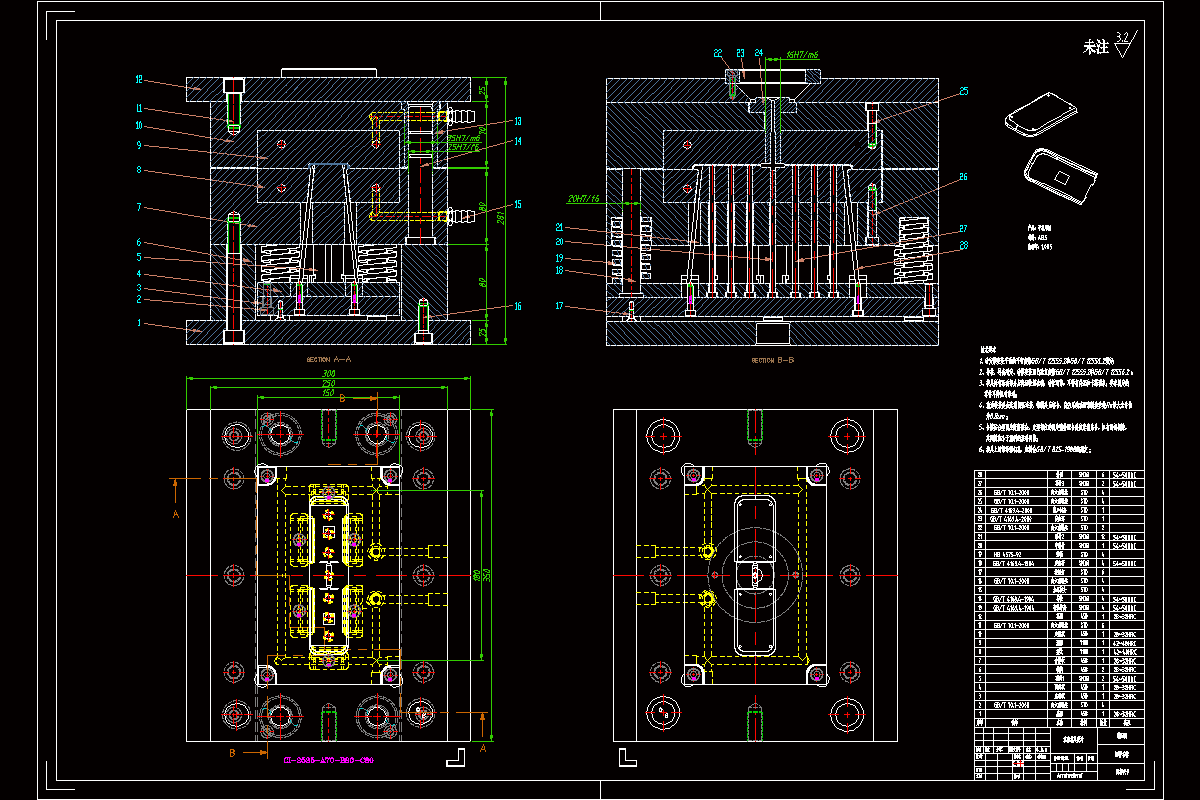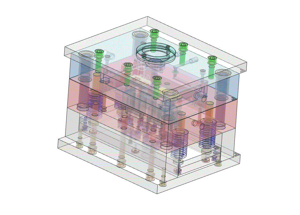 当画出塑件三维图了以后,确定塑件分型面为最大端面处,这样更还直观的可以看出开合模间隙。分型面确定好了以后有就开始型腔布局,如何更加经济和布局的时候需要考虑到之后型芯型腔的机械加工,经过分析布局为一模二腔的布局。再者就是设计流道的时候尽可能考虑到经济方面,流道尽可能不要太长,不要留有过多的废料。最关键在于成型零部件也就是型芯和型腔,设计的时候要额外仔细,数据把控需要很严谨,还有就是距离把控好,这直接关系到了塑件生产出来的质量以及外观。采用分布均匀的布局水道,充分冷却产品即可。然后顶杆布局需要受力均衡,顶出产品保证产品无顶白或者顶穿的情况,再设置弹簧,打螺丝,垃圾钉等等。设计完了以后仔细检查,再通过注塑机进行校核参数是否符合,计算相关尺寸。最后可以导出二维图也可以看见模具结构相互之间是否有干涉,或者遗漏相关的配合块等等,等确定无误以后再在CAD二维图里面进行标数,整理好相关图档、资料。