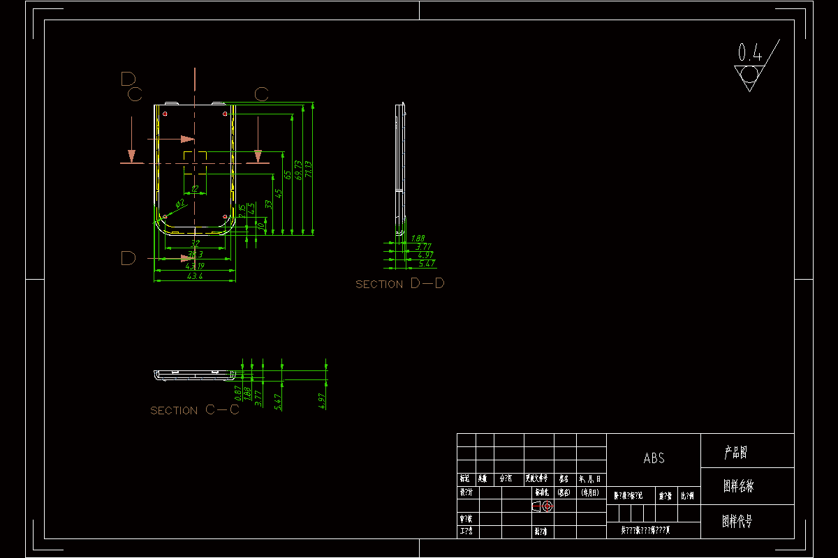 当我拿到塑件了以后就利用三维软件UG对其进行建立模型,开始分析塑件,检查壁厚,结合实际决定采用ABS(高耐热),满足塑件本身要求。本次实际对于塑件表面精度要求一般。