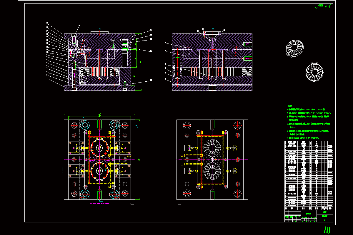 本次设计课题是为小风扇后盖设计制造一套注塑模具,对模具行业的发展情况做了研究和分析,总结了相关技术和方法。开始设计工作之前,首先结合设计任务书的相关要求研究分析了小风扇后盖塑件产品在外形结构方面的各项特点,因为此小风扇后盖塑件有较高的要求,故选用一模两腔型腔布局方案进行设计,利于完成模具内部流道布局的设计工作,侧边位置根据需要开设了凹槽,考虑到塑件特殊的结构情况选用斜导柱滑块侧抽芯机构辅助抽芯,根据加工需要选用了合适塑料材料,并完成了注塑工艺的具体情况,设定了型腔的具体方案及出模数量,设计了模具的流道浇注系统以及温度调节系统等。除此之外,设计了模具的各个成型零件的结构及其参数。为简化模具的设计制造难度,选用了CI-3545-A60-B100-C100模架系统,能够使得整套模具的制造周期显着缩减。