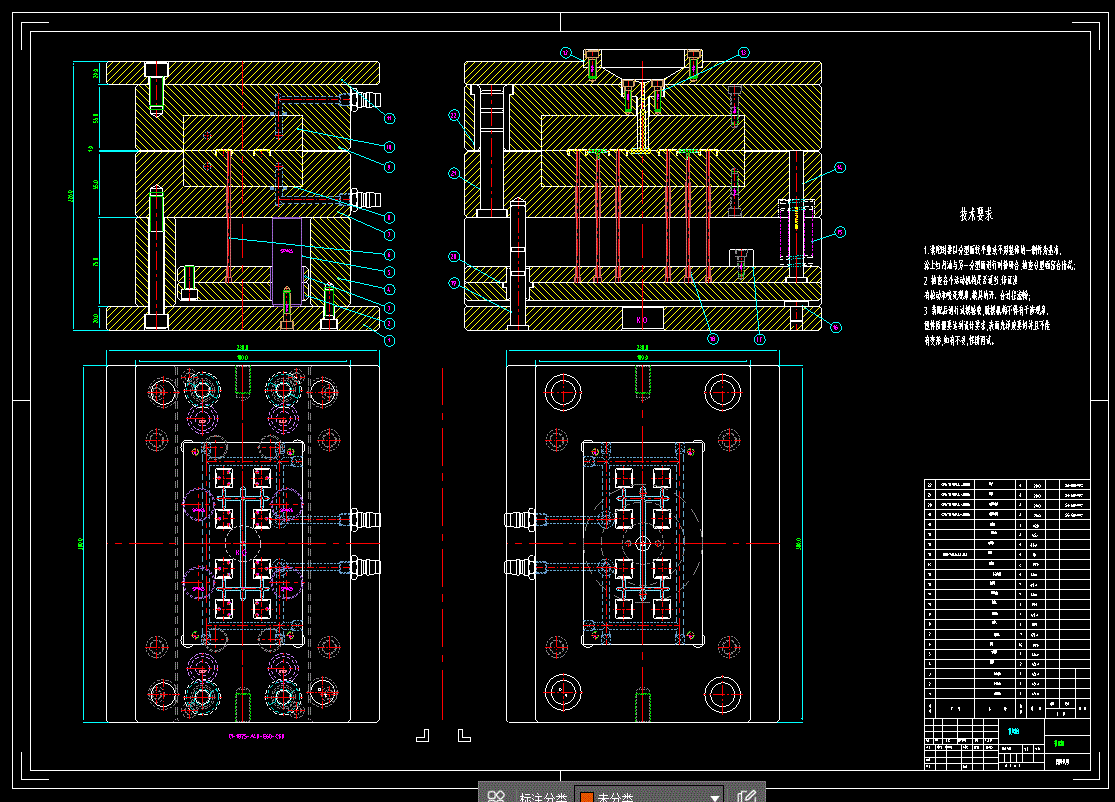 从零件图上分析,该零件总体形状为长方形。因此,模具设计时无须设置侧向分型抽心机构,该零件属于中等复杂程度。 根据计算及原材料的注射成型参数选注塑机为HTF86X。 考虑的制件的取出和模具的开模等情况,以及模具的主流道长度最好小于60mm,以防止因为注塑压力的降低而带来的制件充型不足等缺陷。我们所设计的端盖注塑模具采用一模八腔的方案,即N=8