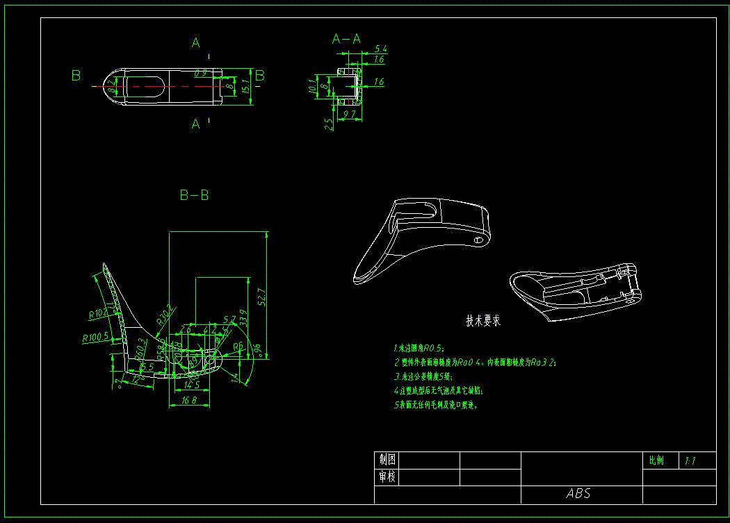 生活之中的塑料产品越来越多,塑料产品给我们带来了很大的方便,本次毕业设计研究模具是非常有意义的。本次设计决定采用一模4腔,侧浇口,大水口两板模具。在开始进行模具结构设计之前运用三维绘图软件和AUTOCAD二维绘图软件对洗发水喷头按压手柄三维立体图及产品零件图进行绘制,从洗发水喷头按压手柄产品的成型结构特征开始、到对分型面分析及位置的选择、模具浇注系统设计、型芯型腔结构设计和尺寸计算,脱模推出机构、冷却系统、导向机构的设计等多方面详细叙述,通过此次对洗发水喷头按压手柄模具设计,对注塑模的未来发展和形的设计方法以及模具设计全过程有一个新的认识。