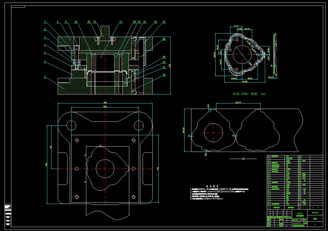 本次设计的工件为前悬安装加强件,其主要的工序有落料、冲孔、翻边工序。零件尺寸加工要求不高,因而采用单工序模具生产。首先,通过查阅相关资料,了解模具制造的重要作用,以及在加工过程中的基本要求;在压力机作用下,金属材料在压力作用下发生变形,同时产生较大的变形,在模具的限制下,材料被挤压生我们所需要的尺寸和形状;生产制造过程中,使用模具制造能够有效的提高生产质量,同时降低技术成本,且能够提高生产效率。因此,对模具尺寸结构的设计、以及加工工艺的改进变得极其重要。 前悬安装加强件,是一种模具冲压件,其加工过程主要分为落料以及冲孔、翻边三个主要过程。分析其结构特征,得到该零件适合冲裁,因此本文对此进行了重点研究;对模具进行结构设计,能够改善产品加工质量,提高生产的效率,对大批量生产具有主要的作用。