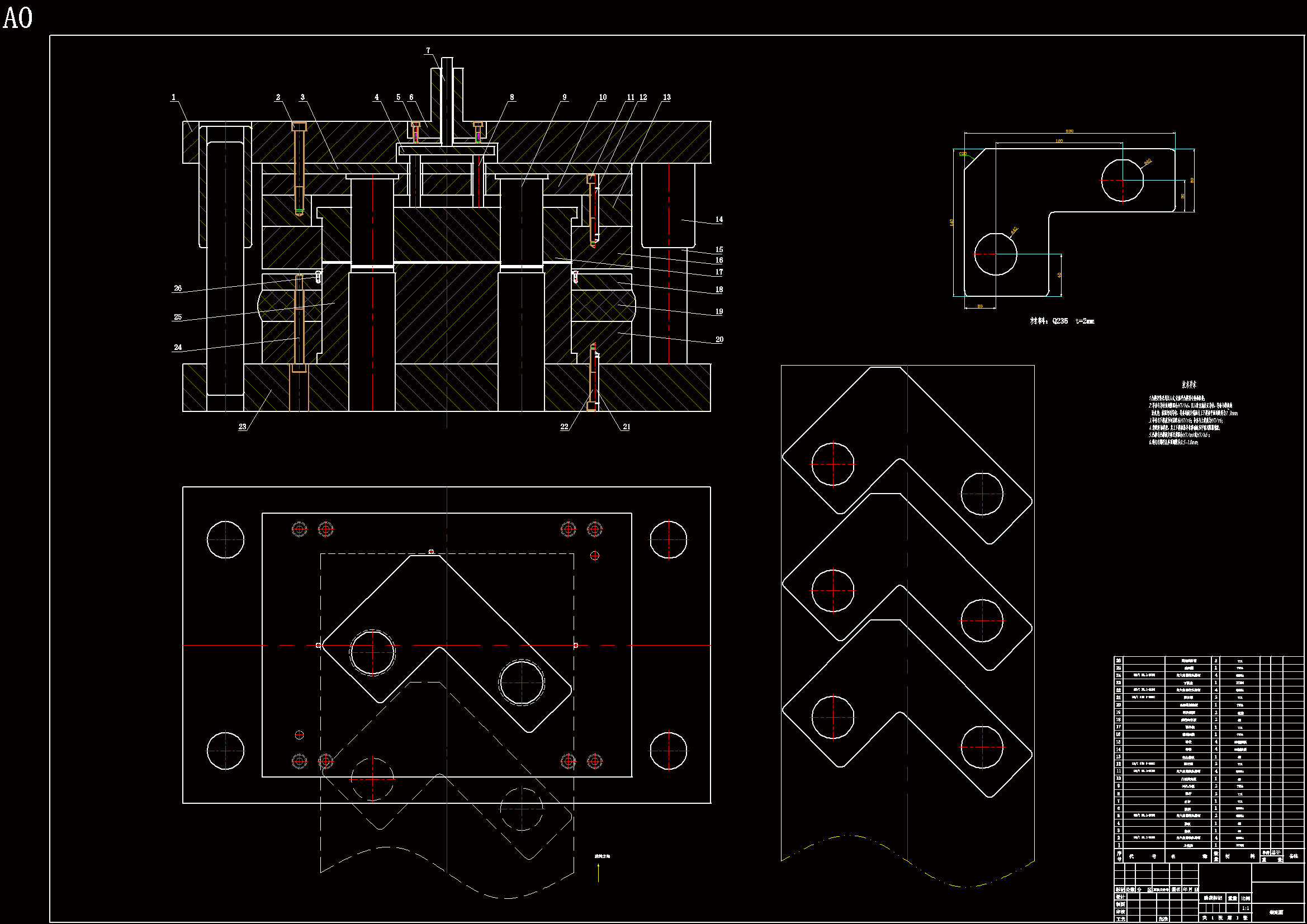 为了实现L型垫板的自动化生产加工,本文设计了一种基于复合模的冲压工艺和模具方案,该复合模实现了对L型垫板的冲孔工序和落料工序,是符合实际生产加工的冲压方法。对于其他同L型垫板的尺寸、材料和形状类似的工件,通过具体分析计算后,也可以将此模具设计方法作为参考,为工厂实际生产工件和现代模具行业的发展作出了应有的贡献。 首先,对L型垫板进行了工艺分析,从垫板的材料和结构方面入手分析确定了复合模冲压方案,复合模结构简单,成本低,寿命长,并且操作方便、安全可靠,能够冲裁出符合质量要求的工件。其次,设计了模具的结构零部件,包括自动送料送料机构、定位方式、弹性卸料板卸料方式、模架以及模具导向结构导柱导套等结构零件。再次,对模具工艺参数做了详细分析与计算,包括工件的排样方式、步距、条料宽度、材料利用率和冲压力,最终确定了冲压机型号和冲压机参数。最后,设计了模具的主要成型零部件,包括冲凸模、凹模和凸凹模的结构,计算了凸凹模刃口尺寸。在此过程中充分考虑到加工精度、加工成本和加工效率,此模具结构不但能省料,材料利用率高,而且导向精度也比较高,容易实现自动化,降低人工生产成本,符合工件实际生产的总体需求。