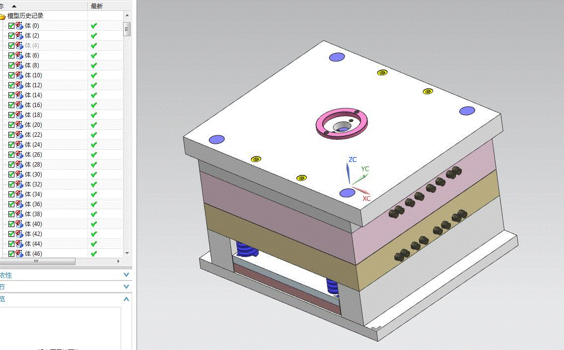 在注塑模具结构设计方面,由于塑料制件没有特殊结构,所以型腔数目确定为一模一腔;其浇注系统采用点浇口进胶,此种方式完全满足工艺生产需求;然后对成形零部件包括凹模和凸模做了详细阐述,对结构零部件包括注塑模架、支撑板、垫块、座板和合模导向机构做详细了说明。另外,还做了详细的温度调节系统的设计。制件最大最大外形尺寸为360mm X360mm X 45mm,制件厚度不大、重量轻,所需脱模力比较小,因此采用推杆作为脱模机构;因为是一模一腔,所以在塑件周围做了左右对称的温度调节系统,确保塑件有更好的品质。 在此基础上,对注塑模具结构的总体布局和主要零部件进行了UG三维结构设计。该结构方案结构简单、成本低、操作简单,易于实现机械化和自动化,满足注塑模具结构设计要求,比较符合实际生产需求。
