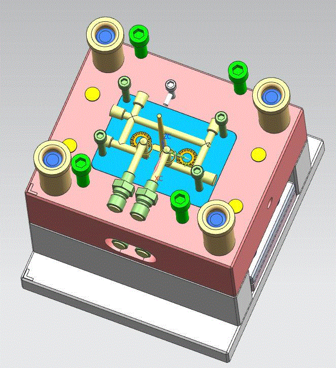 本次设计是关于对学生用走带块注塑模具的设计。结合当前注塑模具的背景,对所给的零件二维图进行分析,通过对其成型分析来设计出满足该零件成型的模具。首先需要对零件的壁厚、成型收缩、尺寸精度及ABS的成型性和流动性进行分析,拟定其成型工艺,对其工艺参数进行初步设定,然后确定具体成型工艺方案。之后需要结合工艺分析结果来设计模具的各机构(包括成型零部件、冷却系统、排气系统、导向系统和脱模系统等)。还需要选择满足条件的注塑成型设备(注射机)及合理的模具材料,为了保证模具的使用可靠性,需要对模具相关参数进行计算校核(包括成型零部件尺寸计算、型腔壁厚计算、推杆强度校核及注射机参数校核等)。最后,绘制完整的模具装配图以及相关零件图。