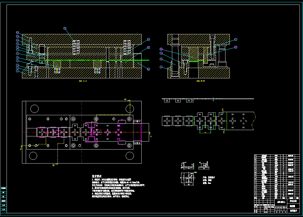 进入20世纪90年代以来,各式各样的五金件成为了主流。由于在生活中许多都要用到五金件,因此,五金冲压模具将不断发展,在近几十年里会有突飞猛进的成果。通过翻阅这些参考资料和文献,深入了解了当代的模具先进制造技术和冲压成型技术。查找整理资料后,对一些模具设计实例有了解与学习,进一步学习了冲压模具设计的方法,并能对模具设计的成本价格做出估算,从而对模具设计有了方向性的指导。 通过对深入学习,对此零部件模具设计时的设计方式有了雏形。先分析零件的冲压工艺;确定模具的总体结构;结合零件的冲压工艺及模具的总体结构设计排样图;根据排样图,计算利用率、冲载力、压力、选用设备及刃口的尺寸。根据资料再用AutoCAD,对模具进行设计,然后绘出装配图和零件图进行标注,并编制零件的加工工艺卡,使理论和生产实际知识综合运用,从而培养和提高了我独立工作的能力。 关键词:冲压模具,落料,冲孔,折弯