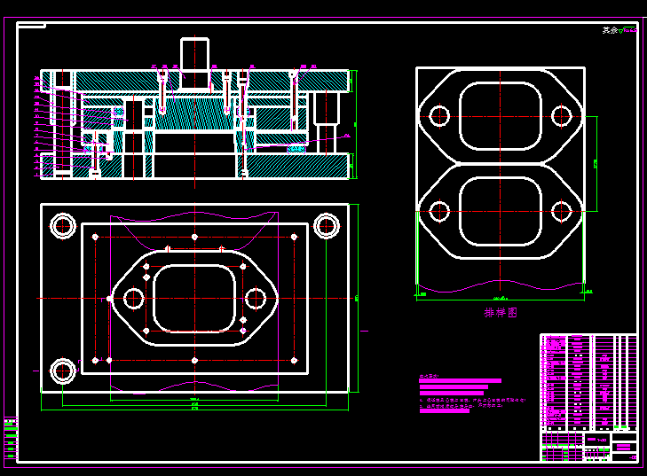 说明书主要通过具体例子的方式对冲压模具的生产流程进行介绍、分析、研究。通过对排气管垫片模具设计的说明,详细地阐述了冲压模具生产的一般流程。对零件加工工艺性分析、零件的加工方式、冲压模具的结构组成等进行介绍并对冲压模具生产中常常出现的缺陷进行分析研究根据对冲裁件尺寸形状的适应性来确定,考虑到单工序送料不方便和生产效率低,因此常采用复合冲裁或连续冲裁。连续冲裁又可以加工形状复杂、宽度很小的异形冲裁件。 根据操作是否方便,生产是否安全来确定 复合冲裁其出件或清除废料较快,工作安全性较差,连续冲裁较安全。 综上所述分析,在满足冲裁件质量与生产率的要求下,选择倒装复合冲裁方式,其模具寿命较长,生产率高,操作较方便和工作安全性高。