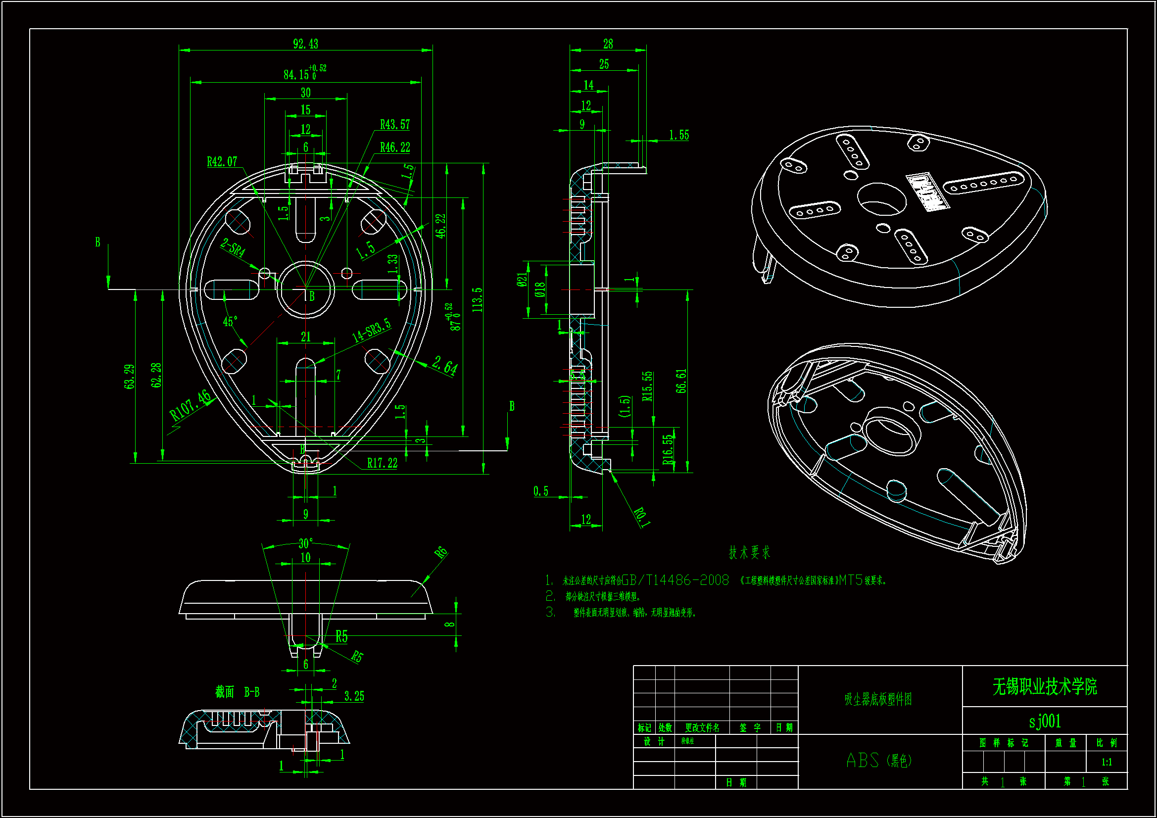 分析了微型吸尘器底板结构的工艺特点,选择塑件材质,分析产品的工艺性,确定成型方案与注射成型的基本参数。阐述了模具设计的过程,利用NX6.0软件进行三维造型,确定型腔数目及排列形式,利用NX自带的MOLDwizard模块完成分型面的设计、浇注系统的设计、型腔和型芯的结构设计、斜顶侧向抽芯机构的设计、模架的确定、排气系统的设计及冷却系统的设计等,并计算相关的参数。选取并完成注射机相关参数校核。重点阐述了斜顶设计中塑件定时粘斜顶的解决方法。最后使用CAD软件绘制出零件图与总装配图