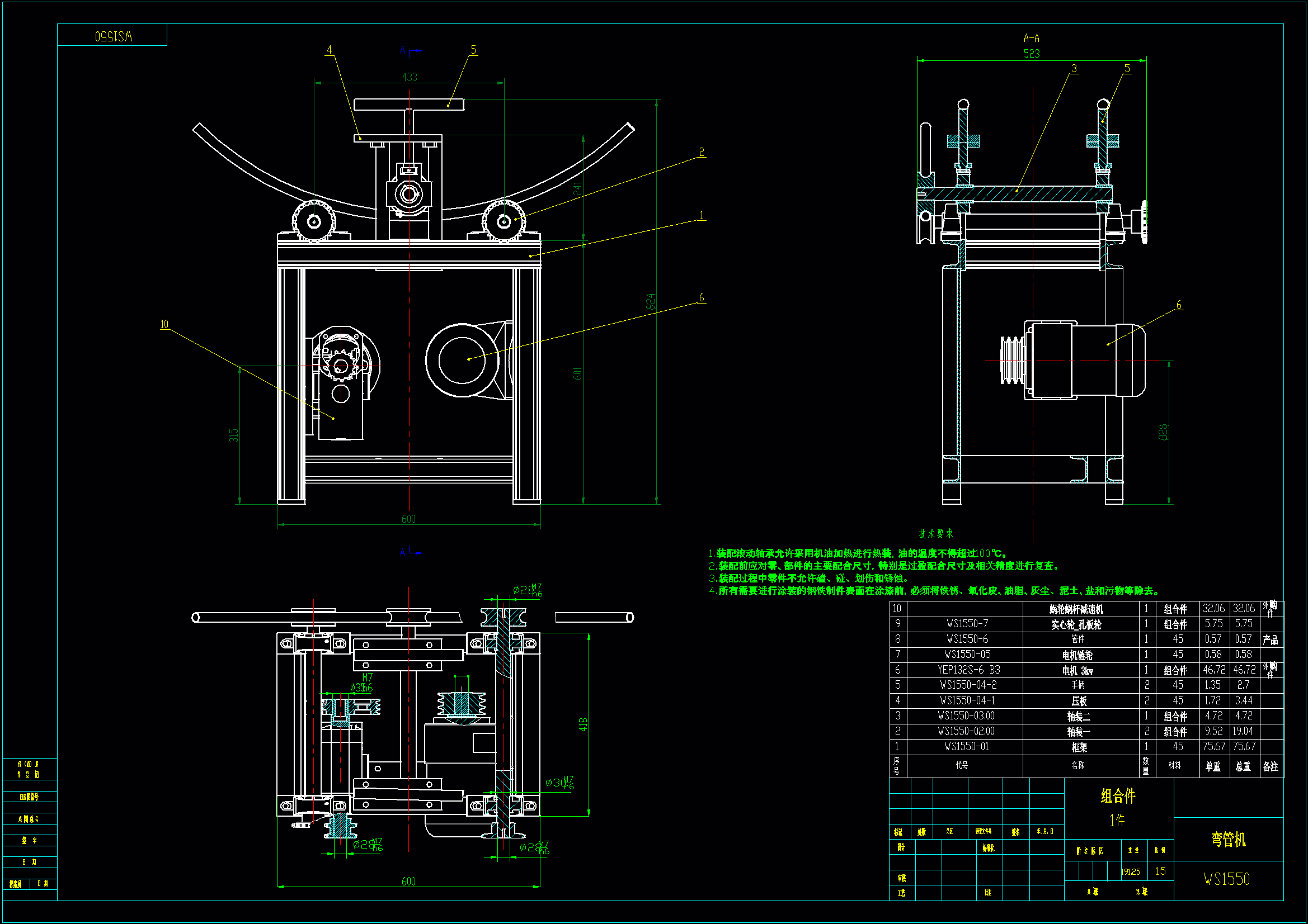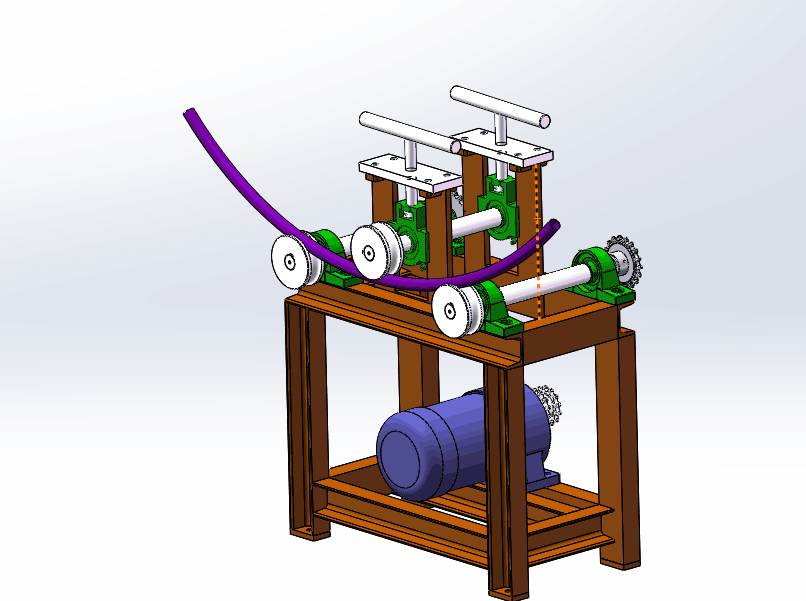 在针对以上问题的思考中,我们发现其实这样的弯管机所生产出来的产品主要是用在一些家具器材的承重器材,以及一些液压机、发动机等机器上液压油输送管等,这些弯管器造价昂贵,体积庞大只适合大型工厂,并不适合小型加工工厂,以及不同行业对于弯管机的需求。本论文设计主要针对当今社会热门的家庭装修行业设计出一种操作方便,基本上能完成一些常见的不锈钢和铝合金弯曲作业的弯管机。同时相对于传统的弯管机对其性能进行优化,完成必要设计的同时减小机身体积,使其能满足家庭装修作业要求的同时也能一定程度上降低机器制造成本。在机身设计上,考虑到此类弯管机作业环境较为不规范,所以在机身设计上准备设计分层式结构,即采用盖板——传动机构——中板——电机和减速器——底板的模式,同时对于机身进行包裹。 此弯管机的基本工作原理是通过合理的支点和受力点施加弯矩.使钢管发生塑性变形.从而实现钢管冷弯曲的目的。上模下降使钢管横向受力,下模中心和夹具均为支座反力当钢管下部管壁的拉伸应力达到材料的屈服极限时.钢管产生塑性变形.沿上模曲线依次弯曲成型。
