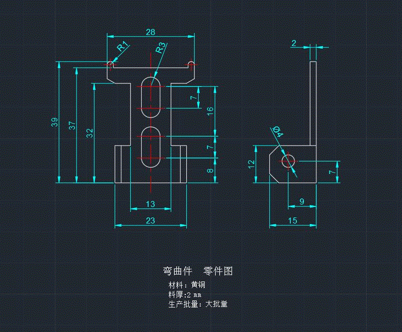 根据所学的知识本次设计的任务为弯曲件零件冲压模具设计,钣金冲裁件采用的加工模具为冲压模具。本次设计中需要完成弯曲件零件的工艺性分析及模具的设计,应用所学的课程知识和工厂实训知识,对本次的设计进行全面的应用。