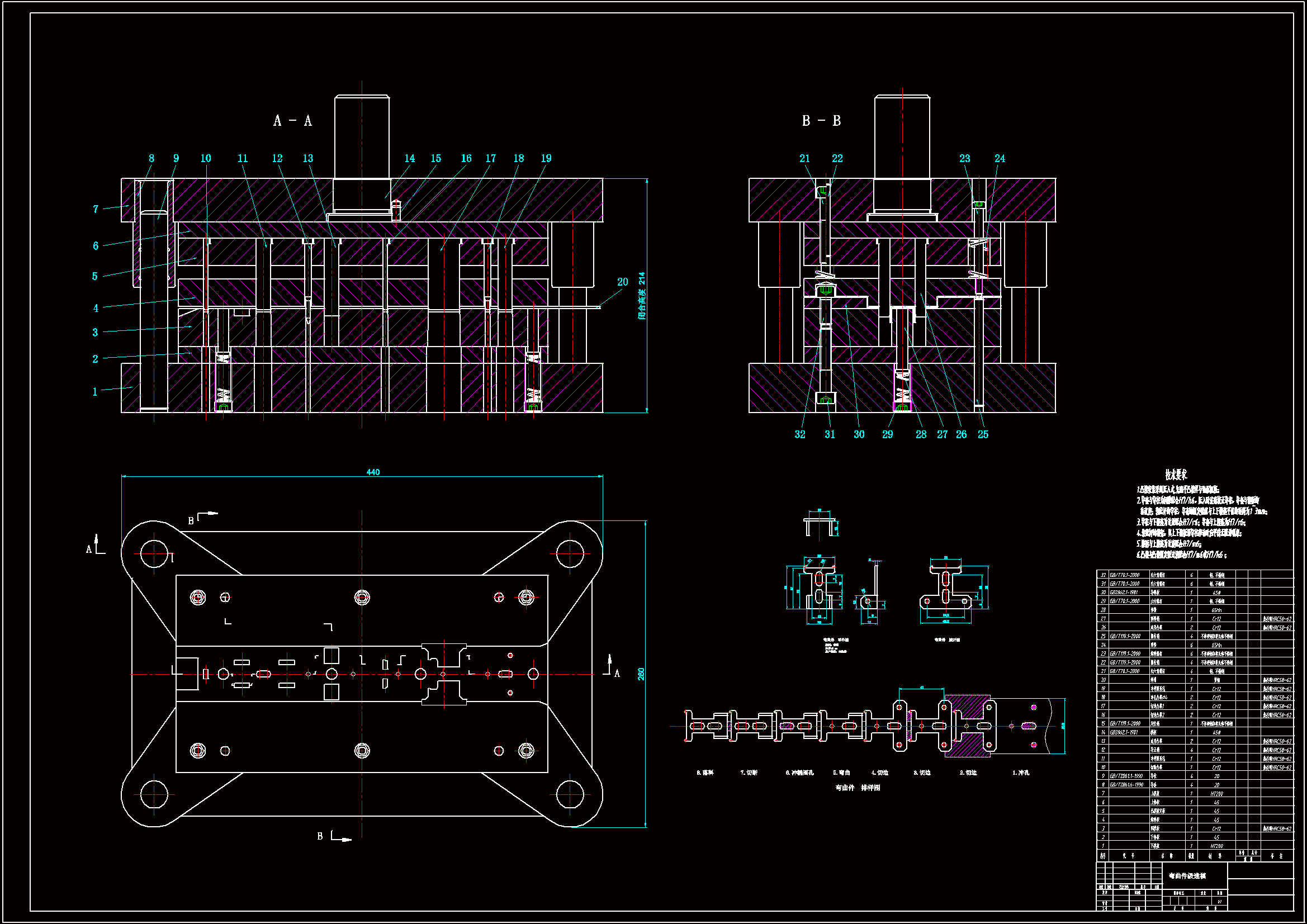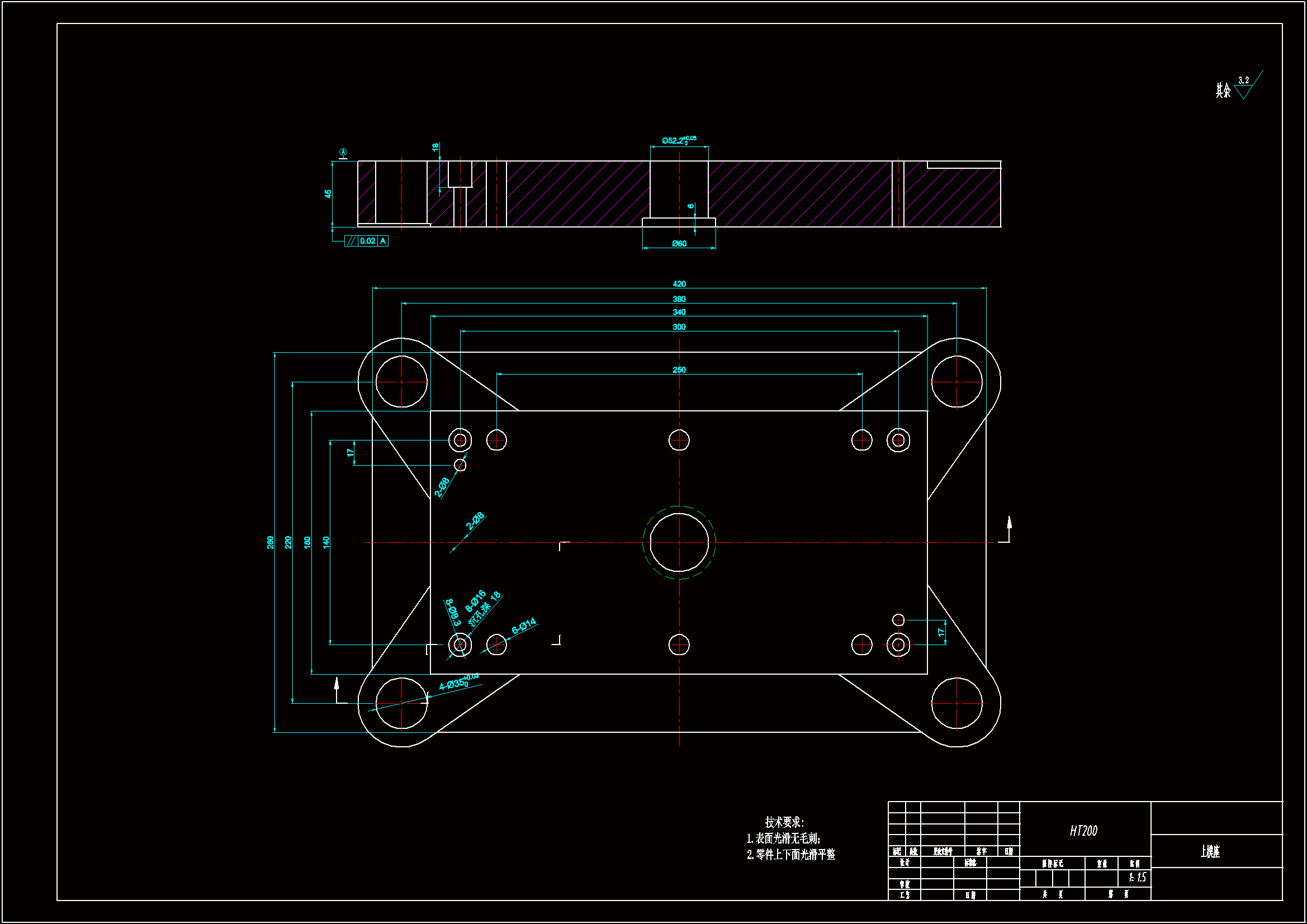 根据零件图可以看出零件分为落料、冲孔、弯曲等工艺,此次设计中完成整个零件的冲压模具设计,所以在模具各零件的加工和装配中需要考虑各工艺技术要求,凸模、凹模、等主要零件的外形、内孔采用的加工设备,怎样保证各型孔的位置精度,冲裁刃口的表面质量等,还需考虑各板之间的固定方式、凸模的固定方式、压料卸料的结构形式、上下模组件的导正方式、装配高度与冲压设备的匹配要求等。在这些问题中可以看出模具设计是综合性强,各条件要求很高的一项工作,所以在整个设计中要不断学习改进才能达到规定的要求。