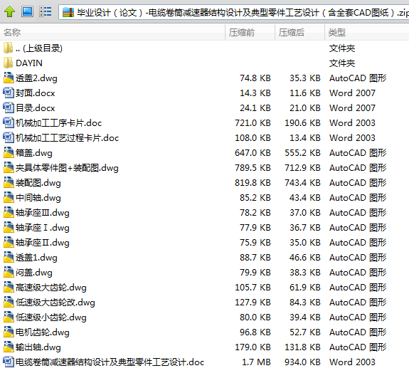 电缆卷筒减速器结构设计及典型零件工艺设计