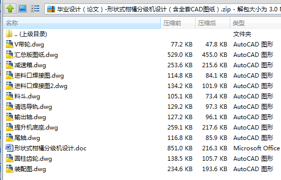 形状大小划分开来。而且能按不同的要求,实现等级和规格数的调整。本设计的特点是在依靠提升装置和分级装置,依