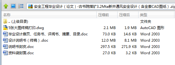 一般部分为古书院煤矿3.2Mt/a新井通风安全设计,其内容共分为五部分:
