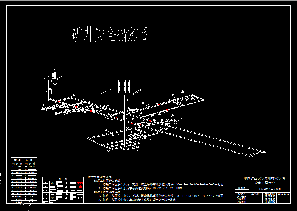 4.矿井通风设计: 根据矿井开拓条件,采用中央边界式通风系统。工作面采用“U”型通风,掘进工作面采用局部通风