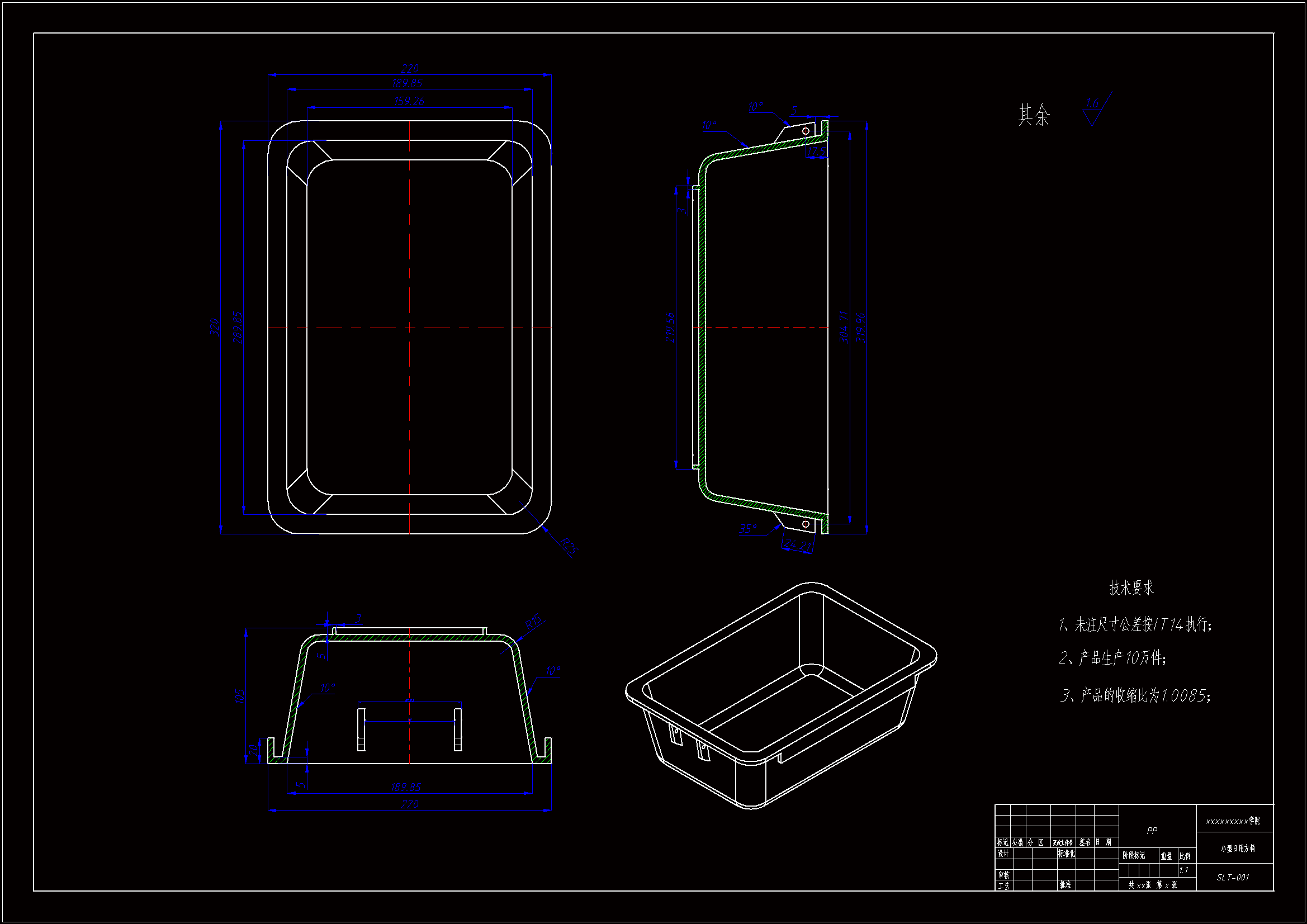 该课题从产品结构工艺性,具体模具结构出发,对模具的浇注系统、模具成型部分的结构、顶出系统、冷却系统、注塑机的选择及有关参数的校核、都有详细的设计。通过整个设计过程表明该模具能够达到此塑件所要求的加工工艺。