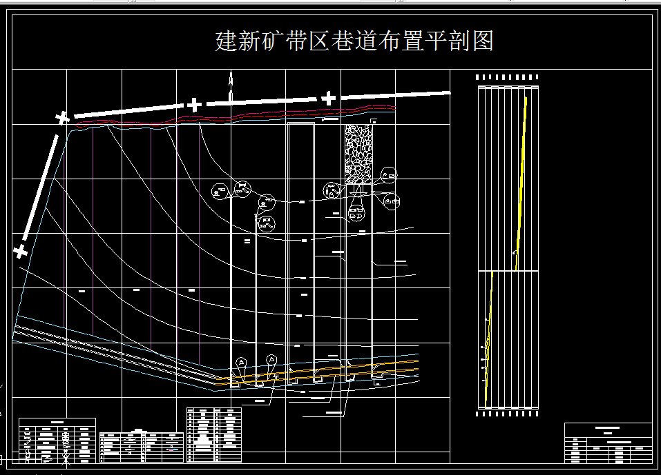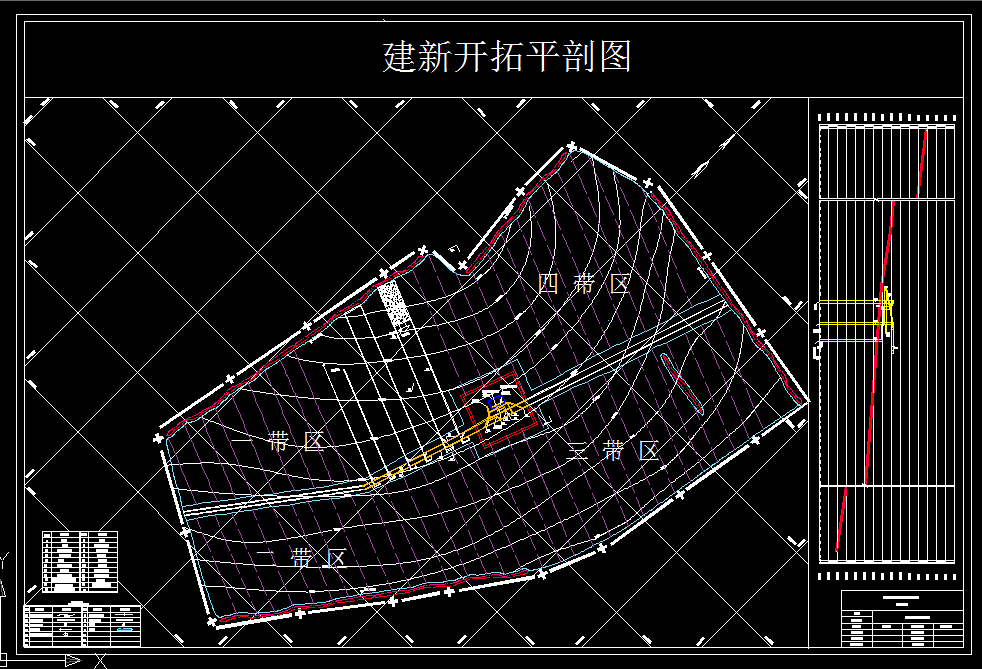 二、开拓开采设计。根据建新矿煤层赋存条件及煤炭部设计规范,确定矿井采用立井单水平开拓方式,主井装备箕斗,