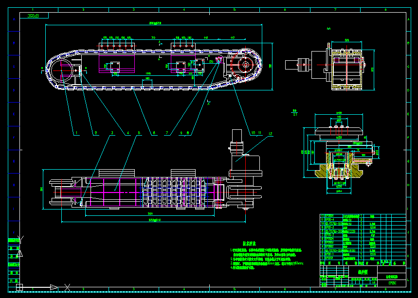 This design References the EBJ-120TP tunneling machine which is designed by Coal Science Research Institute in Taiyuan. It is one kind of medium cantilever tunneling machine which is mainly used in the medium coal lane and the half coal crag lane digging the tunnels, its structure compact, the compatibility good, the fuselage short, the center of gravity low, the operation simple, the overhaul is convenient. My design mainly aims at the tunneling machine’s walks-organization. I try to carry on the design of its structure and transmission.It uses marching walks organization, the actuation power provides by the oil motor, using the change of the oil motor’s rotation direction to make the walks-organization advance, retrocede, and turn. In the transmission design of the walks organization, using High-speed hydraulic motor to connect a pair of cylindrical Gear then connect a 3 K (II) type planetary gear, and uses the brake to link hydraulic motors