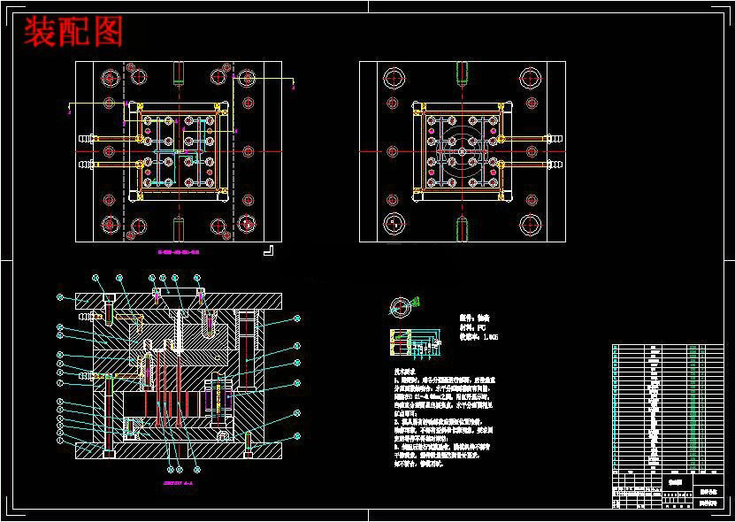 根据塑料制品的要求,了解塑件的用途,分析塑件的工艺性、尺寸精度等技术要求,选择塑件制件尺寸。本模具采用一模四件,侧浇口进料,注射机采用海天110x1B型号,设置冷却系统,设计中采用侧浇口,且塑件的尺寸不大,为提高塑件成功概率,并从经济型的角度出发,节省生产成本和提高生产效率,采用一出十六腔,进行加工生产。由于采用一出十六腔,需要至少注射量为2.6x16=41.6g,流道水口废料10g,总注塑量达到42g,再根据工艺参数(主要是注射压力),综合考虑各种因素,选定注射机为海天110x1B。