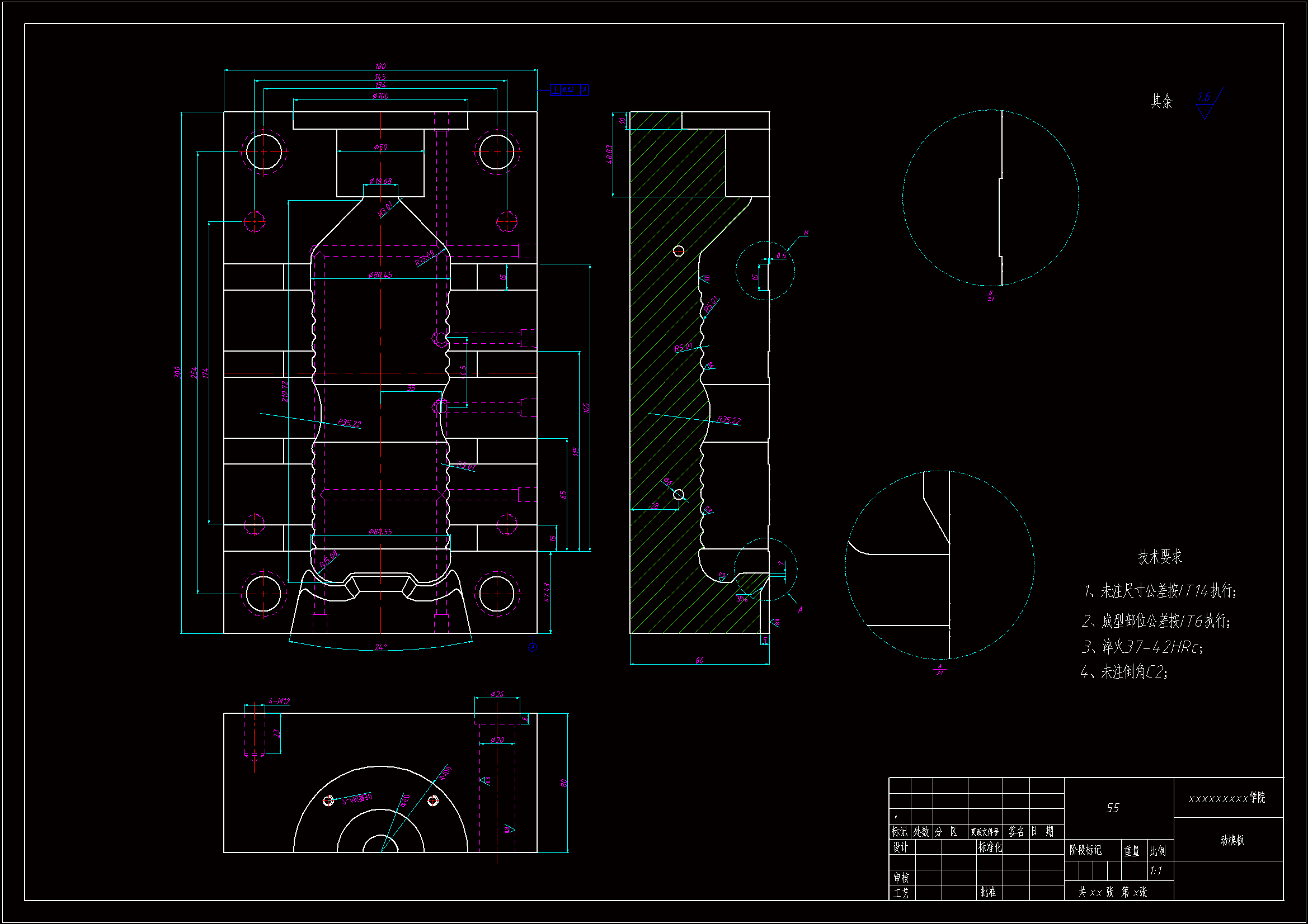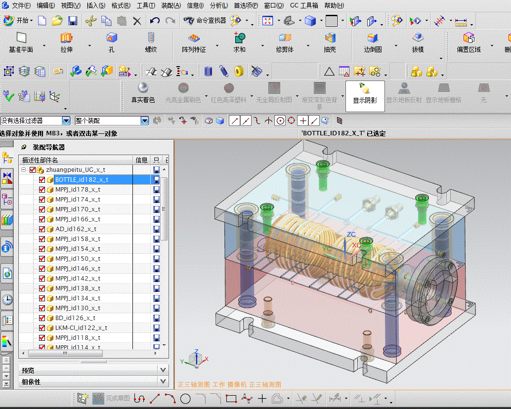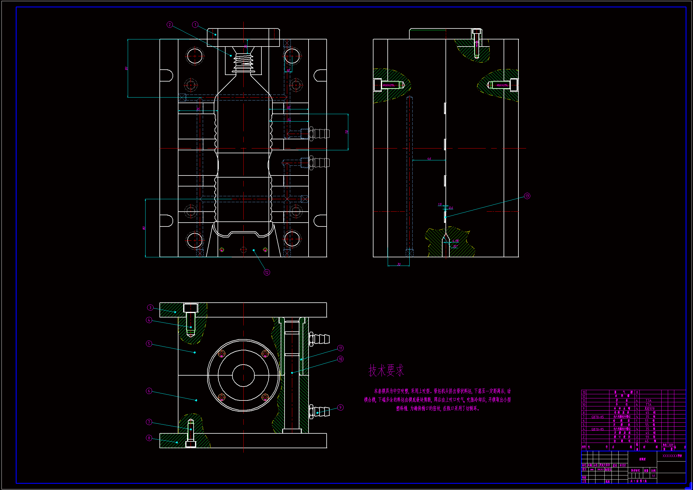 本次设计的课题为塑料瓶吹塑模具的设计。瓶的形状是腔大口小,要是采用普通的注射模设计,型芯将难以脱离。虽然可以采用变型芯,但那样会使模具成本大幅度增加,且设计难度比较大。因此塑料瓶模具为上吹型中空吹塑模具,采用嵌块式结构,水路冷却,结构简单,耐用,便于更换部件,生产效率比较高。模具由动模板、定模板、切割环、模口嵌块、夹坯口、余料槽以及固定板等部件组成。