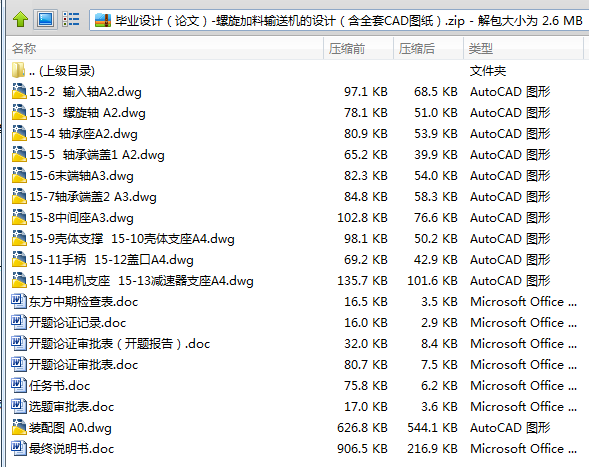 了解了螺旋输送机的类型、发展现状。阐明了螺旋输送机的工作原理。并根据螺旋输送机的工作原理、工作条件、输送