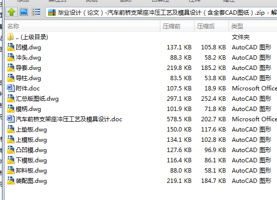 都进行了分析在设计过程中除了设计说明书外,还包括模具的装配图,非标准零件的零件图,工件的加工工艺卡片,工