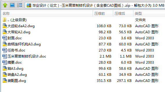 2、若题目上备注三维,则表示文件里包含三维源文件,由于三维组成零件数量较多,为保证预览截图的简洁性,本站将三维文件夹进行了打包。三维及CAD预览截图,均为本站电脑打开软件进行截图的,保证能够打开,下载原件超高清,下载后解压即可;